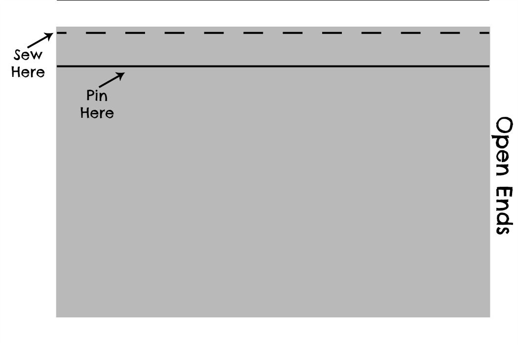 2. Sew along pinned side about 1/4 inch in from the edge. (see diagram below)