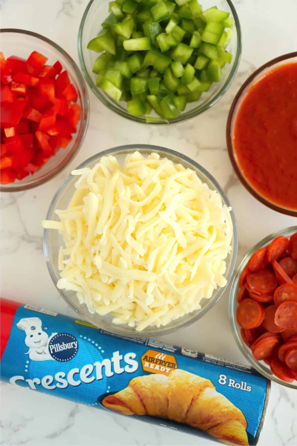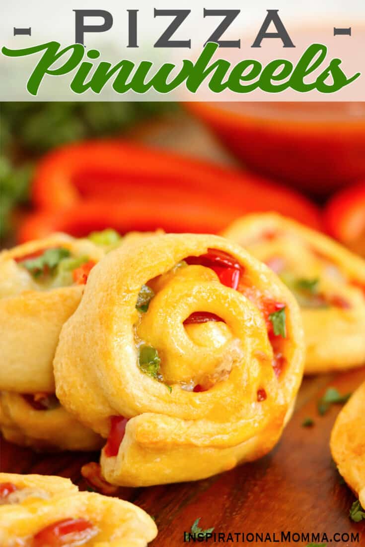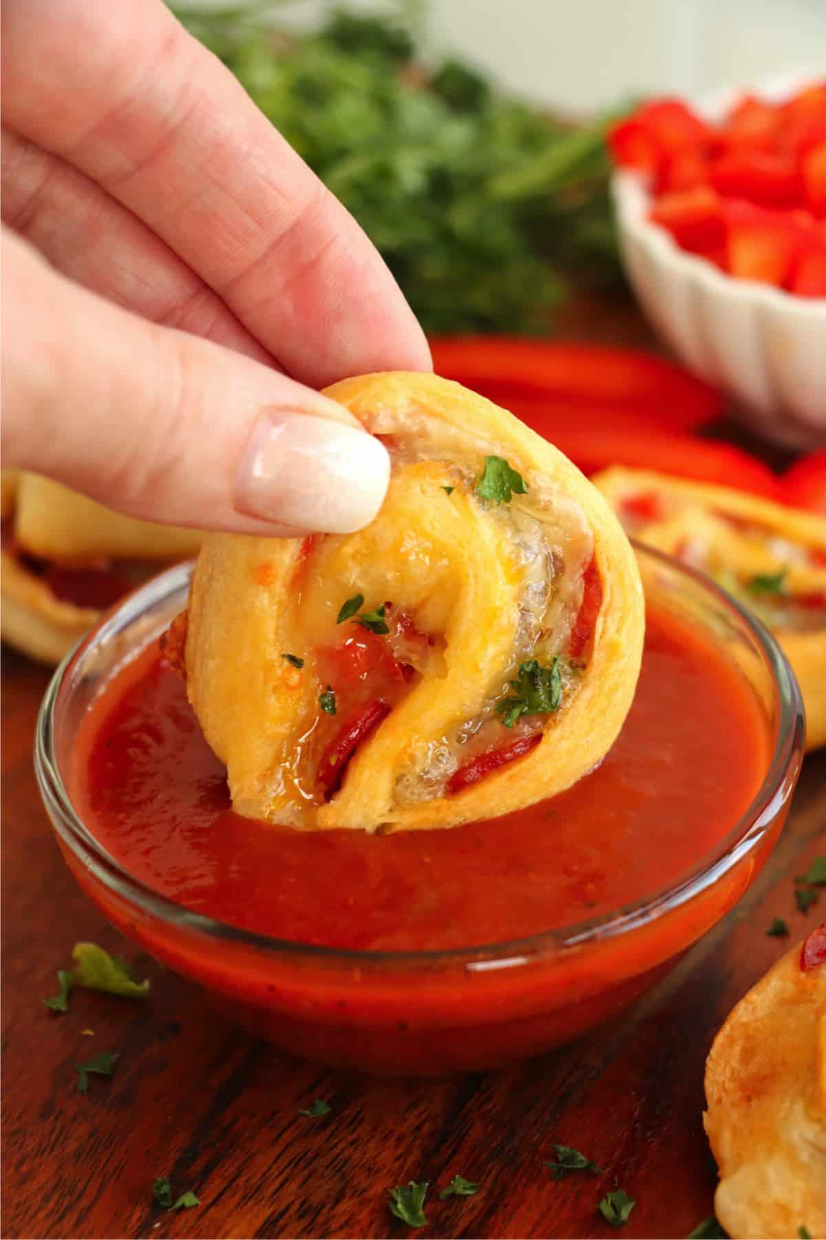 Pizza pinwheels combine crescent roll dough with your favorite pizza toppings in golden brown pinwheel. Then, they're dipped in pizza sauce.