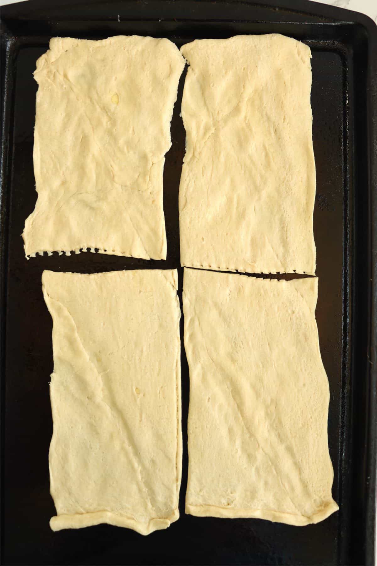1: Unroll the crescent dough and pinch the triangles together to create four rectangles.
