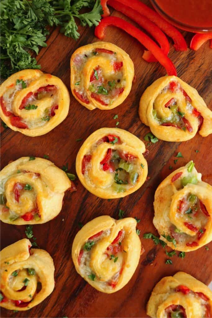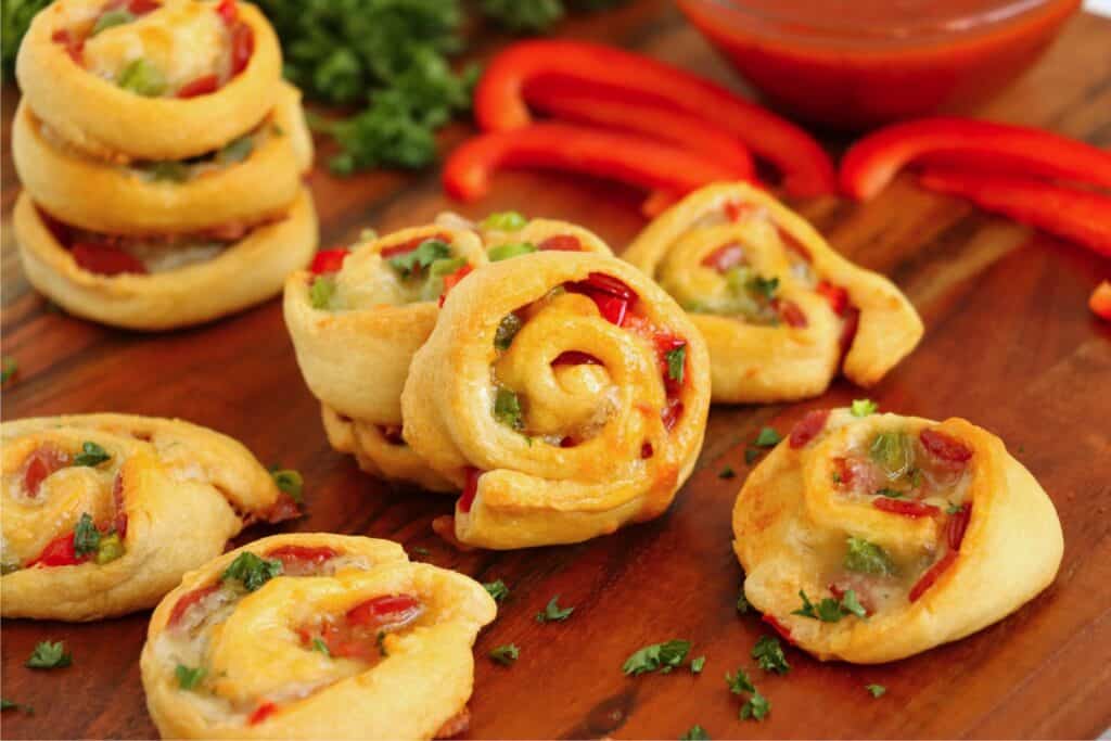 These pinwheels are great appetizers and pair well with any of your other favorite finger foods at parties. You can also serve them alongside pizza, pasta, breadsticks, mozzarella sticks, and the like to create the ultimate pizza party.