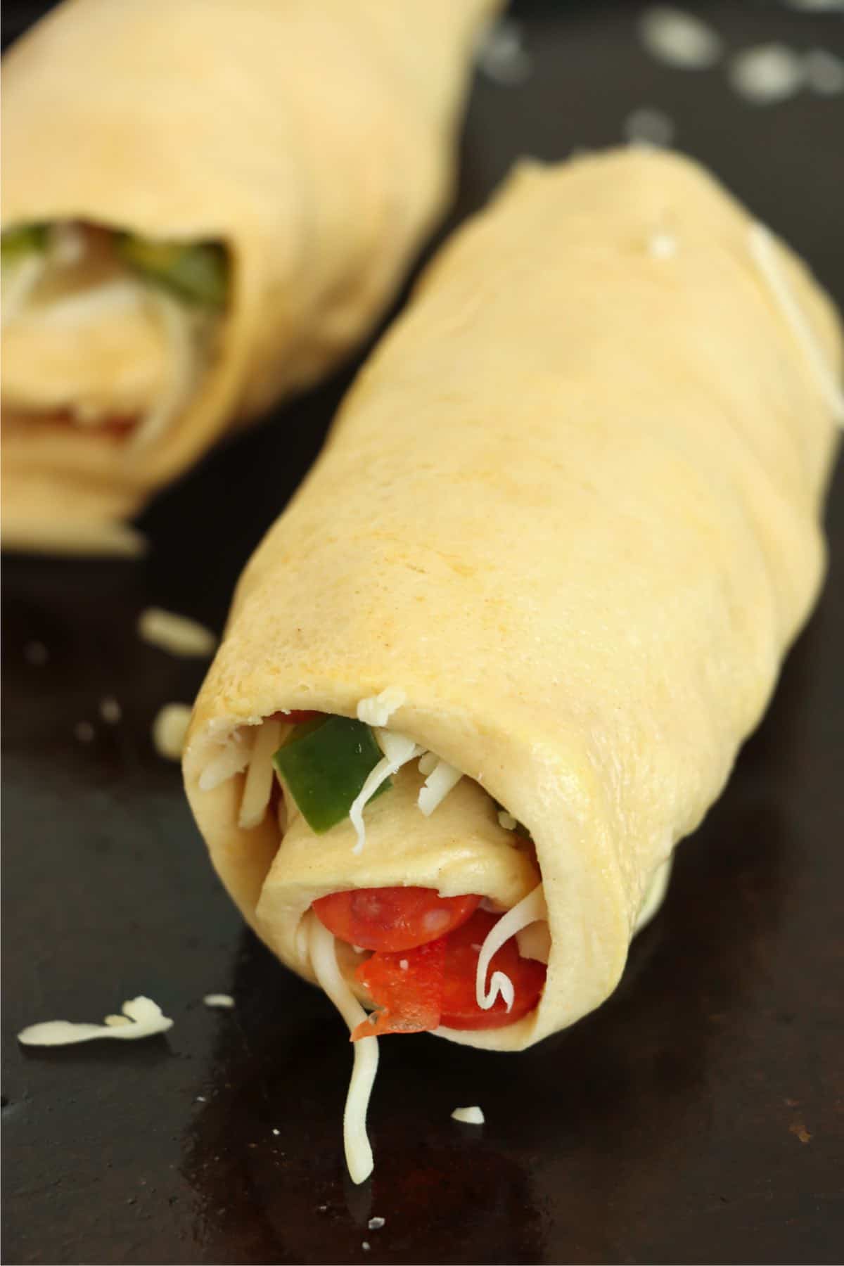 - If you plan on using bacon or sausage in these pinwheels, fully cook the meat first.