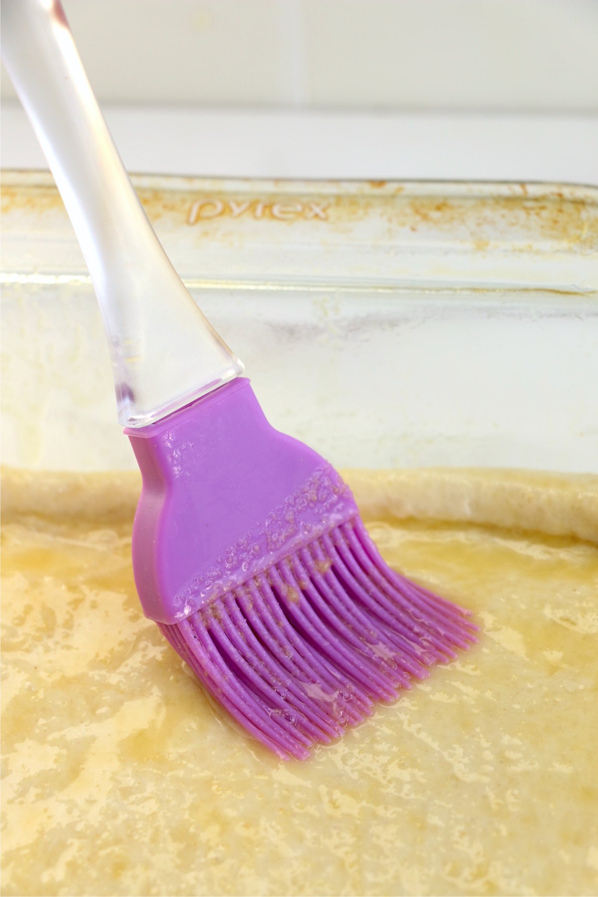 Step 4: Brush the dough with garlic butter from edge to edge.