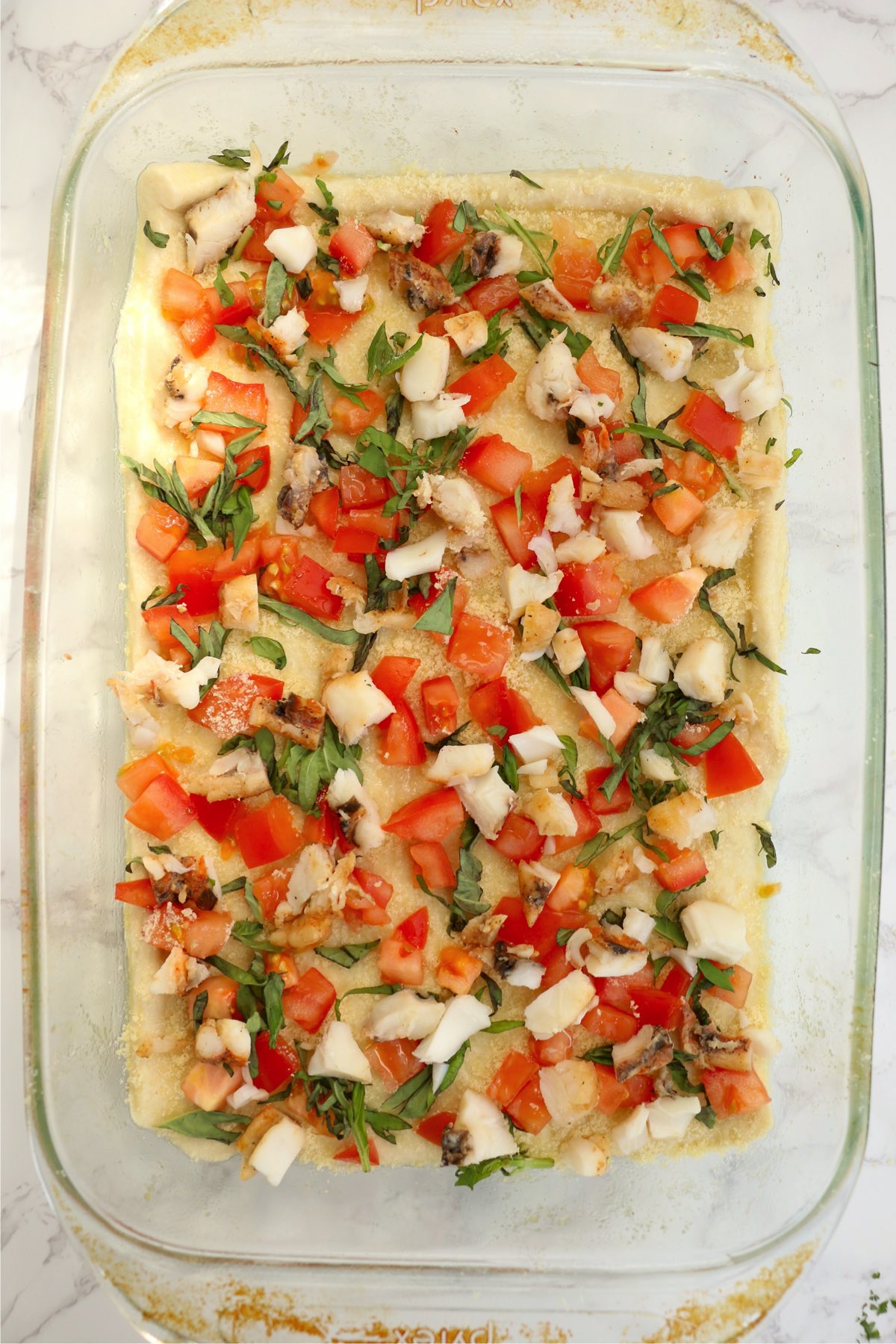 Step 8: Evenly distribute lobster chunks over tomatoes.
