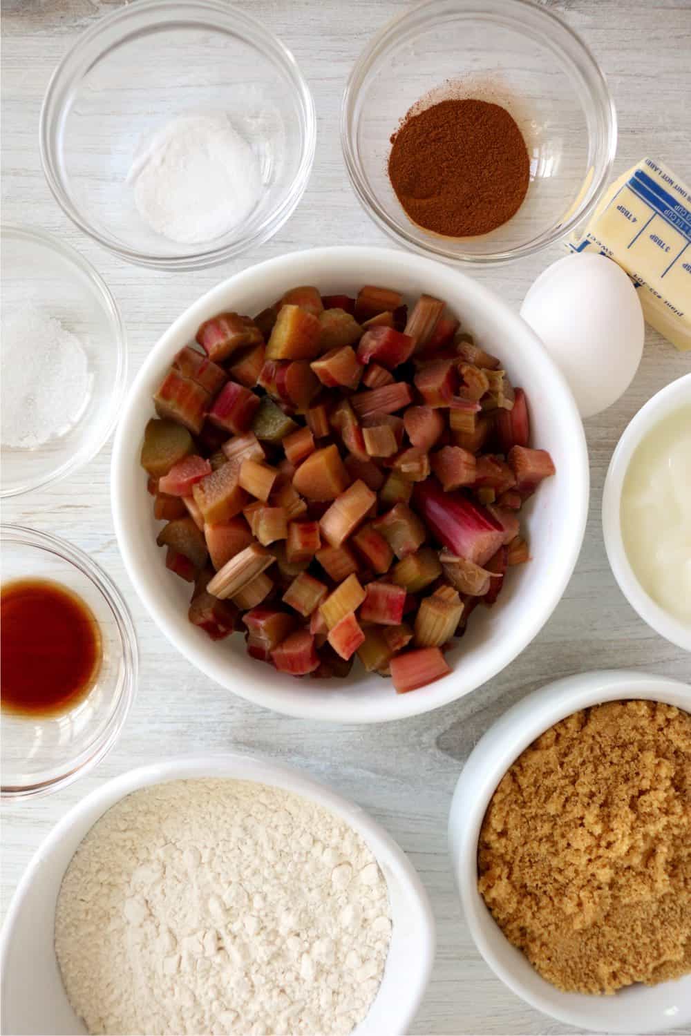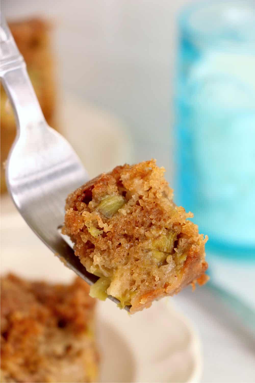 Rhubarb is in season from March until May. Don't fret though, even if you want to make this cake outside of rhubarb season, you can use frozen rhubarb to make this coffee cake or you can pick up some fresh rhubarb at your local grocery store.