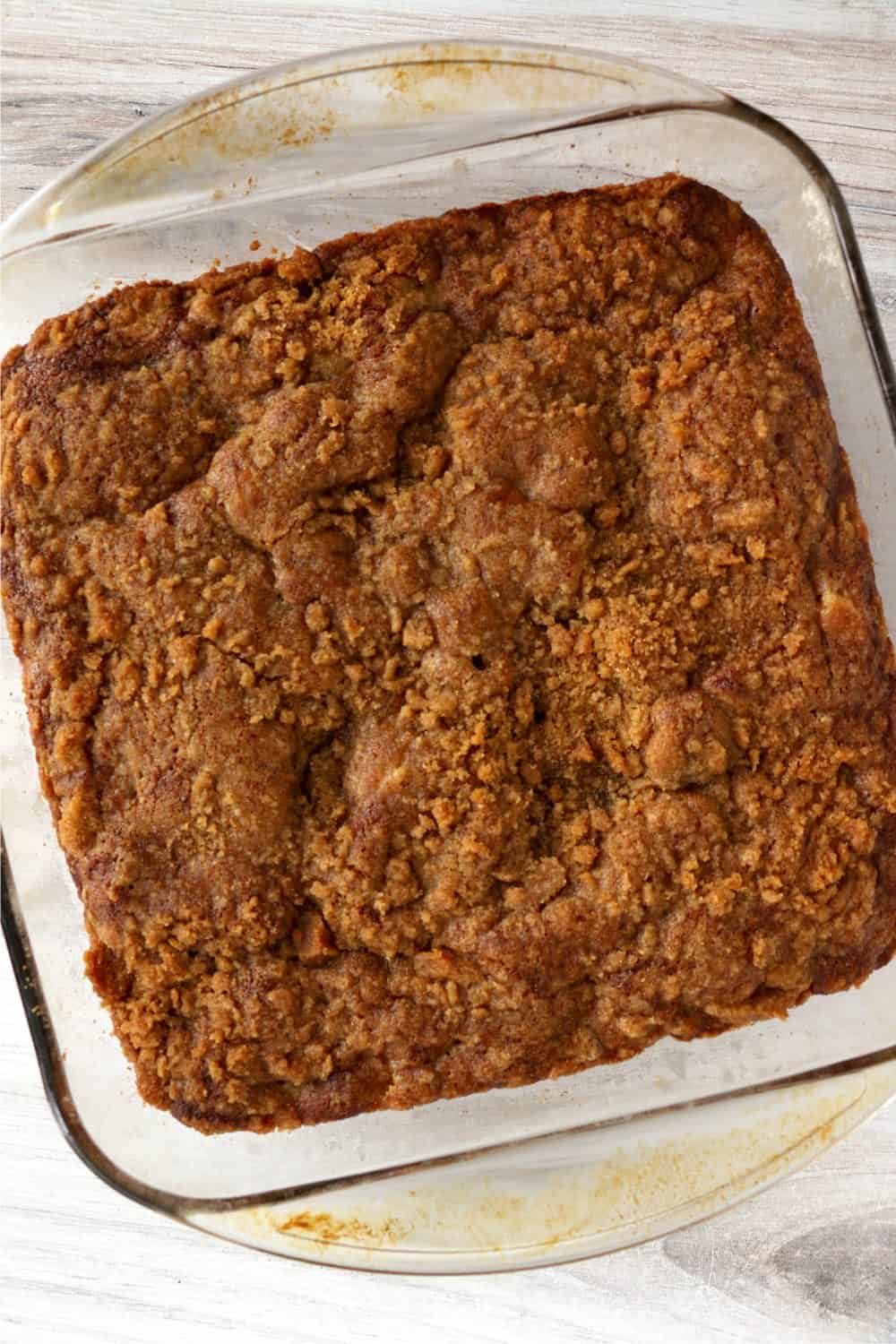 Coffee cake is a sweet quick bread that is typically eaten for breakfast or dessert. They often contain some sort of dried fruit, nuts, and/or spices which help to give them their distinctive flavor. Coffee cake has long been a favorite breakfast in the United States. This cake goes so well with a steaming cup of coffee, which is exactly why it’s been named “coffee cake.”