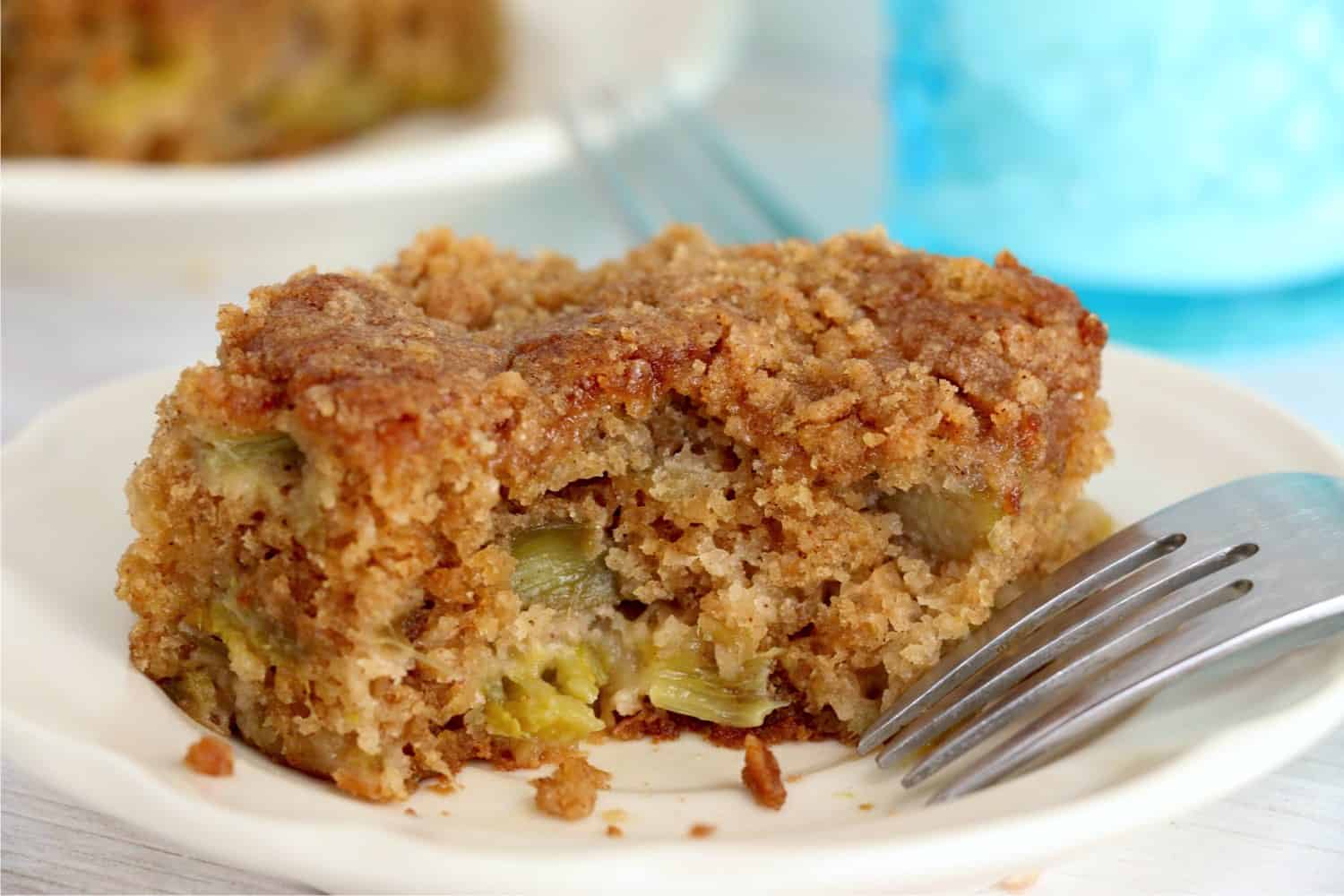 Rhubarb Coffee Cake is a soft and delicious coffee cake that is topped with a cinnamon topping and makes for a great breakfast or dessert.