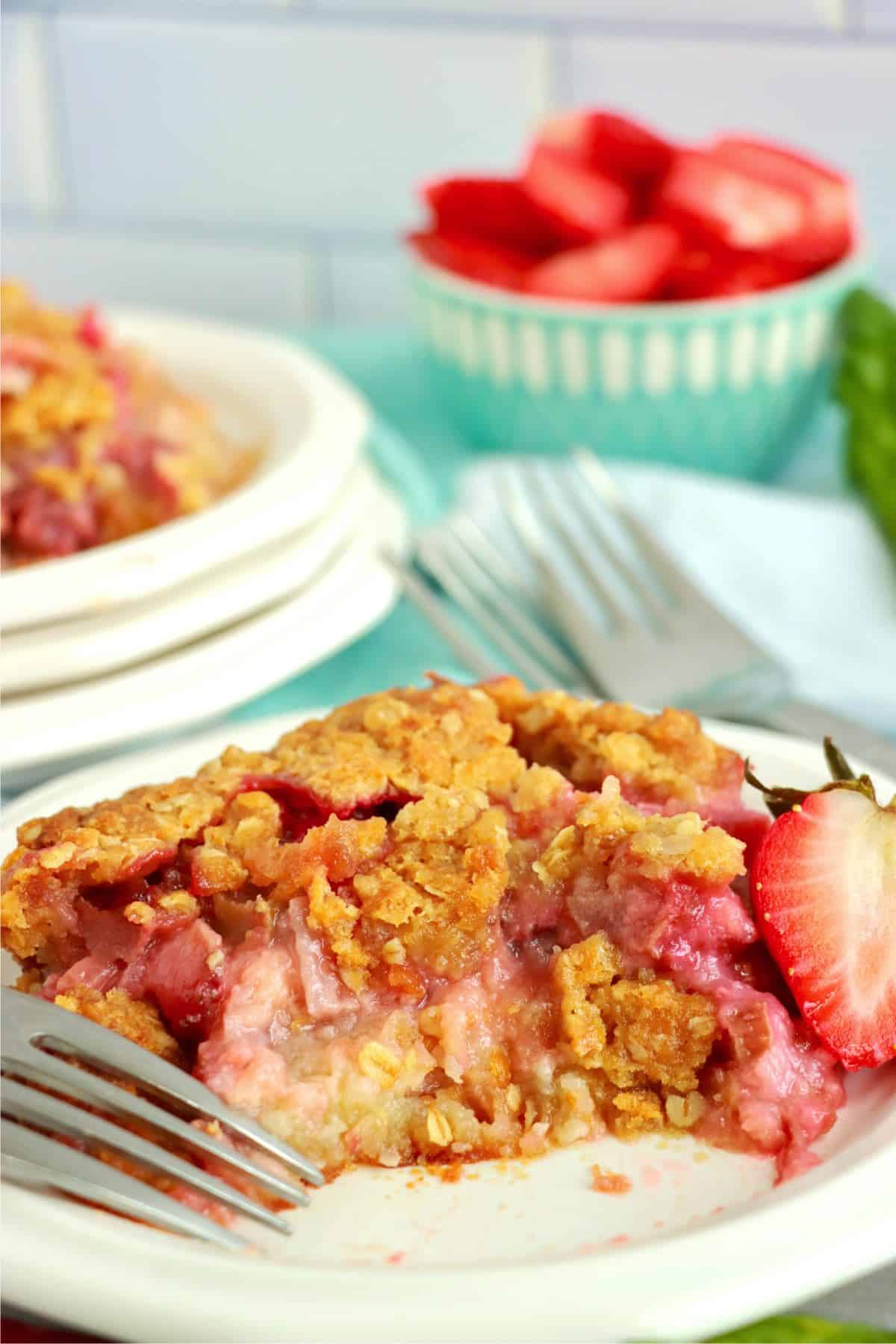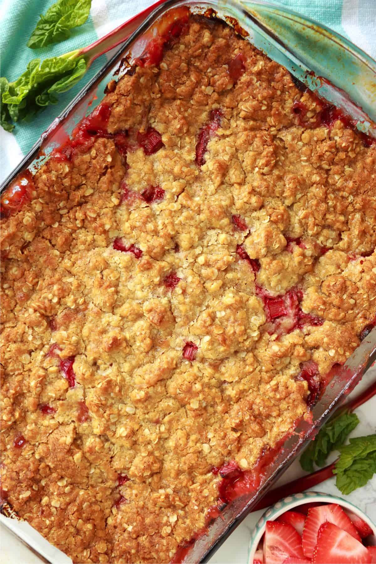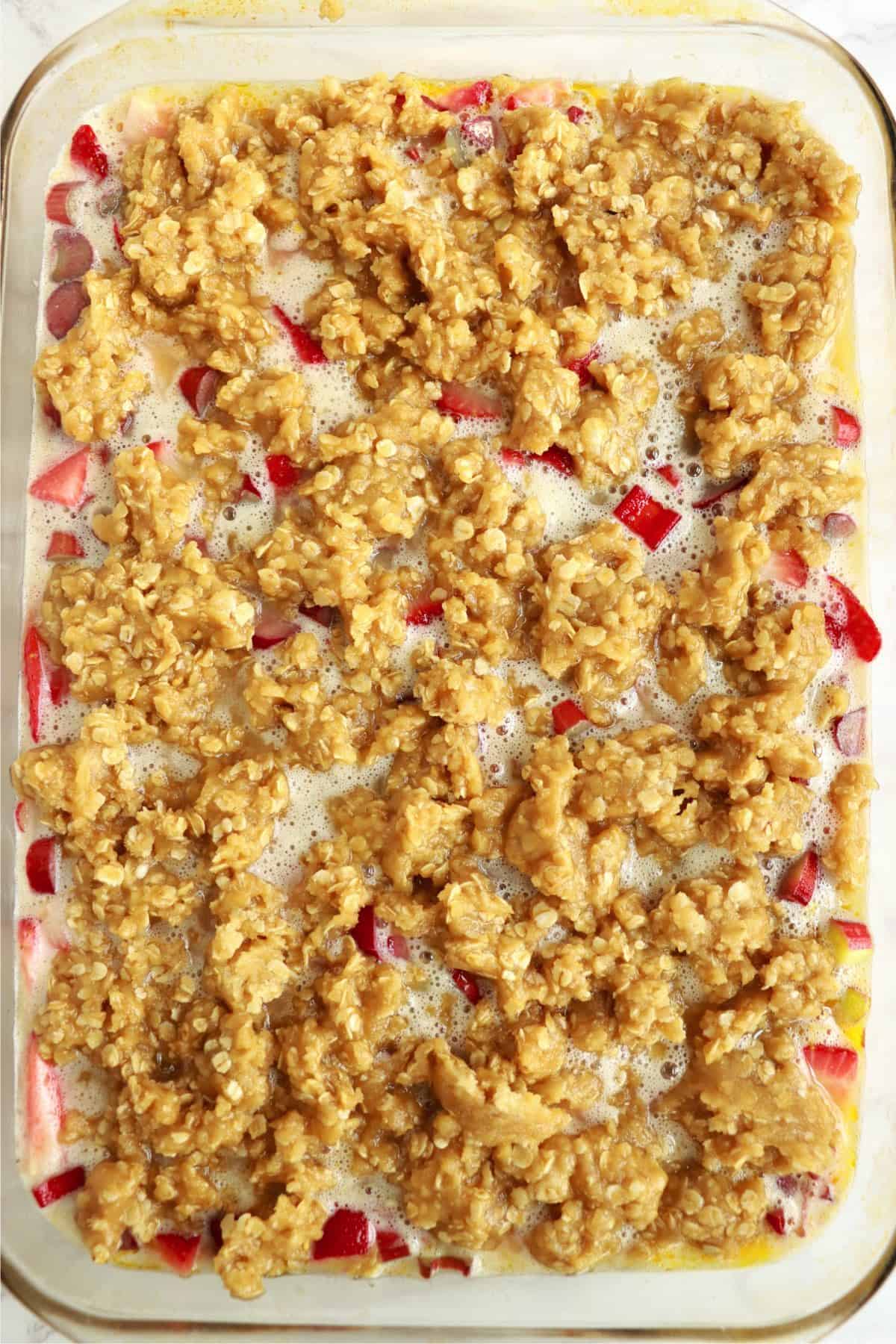 - It's loaded with sweet and tangy strawberry rhubarb custard and an oatmeal crumble topping.