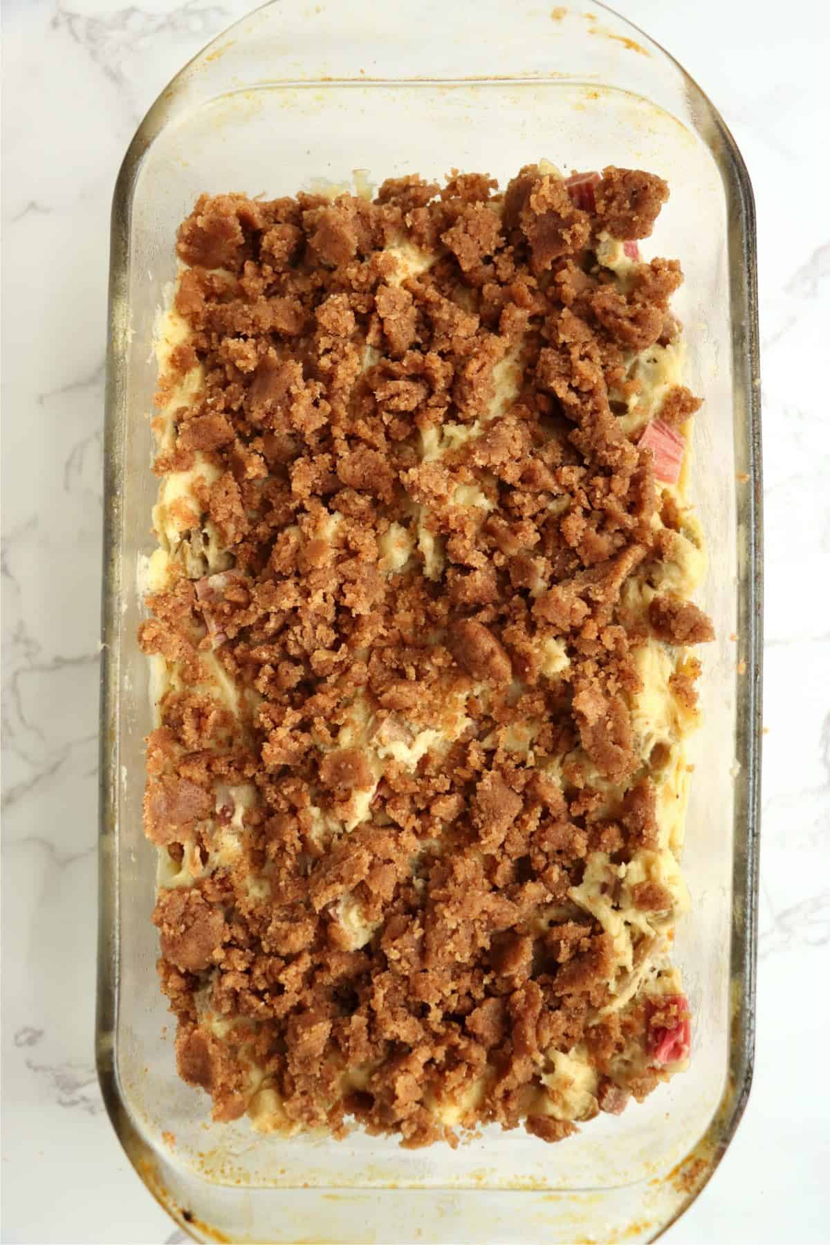 - Sprinkle crumble evenly over batter.