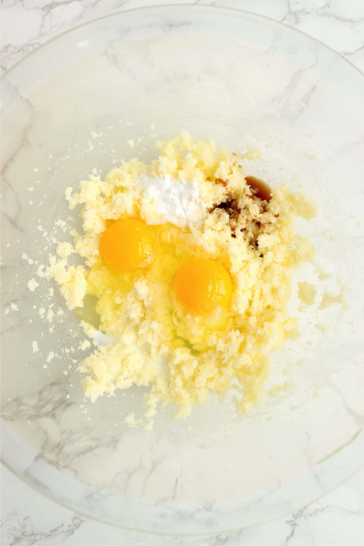 - Add eggs, baking soda, milk, and vanilla. Beat again.