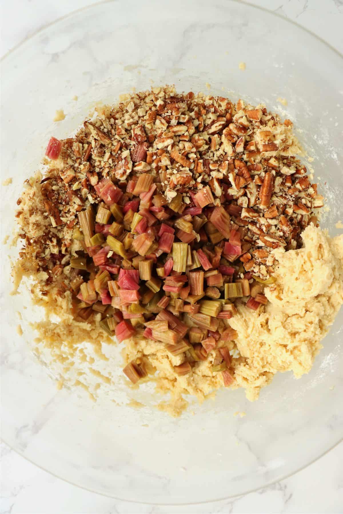 - Stir in rhubarb and pecans.