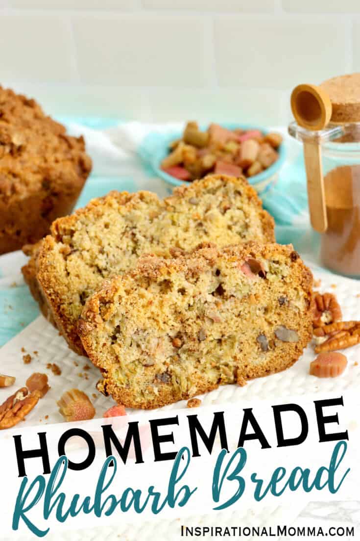 This rhubarb nut bread is full of sweet and tangy rhubarb flavor, cinnamon, and chopped pecans. It's an easy rhubarb quick bread that's as easy as it is tasty.