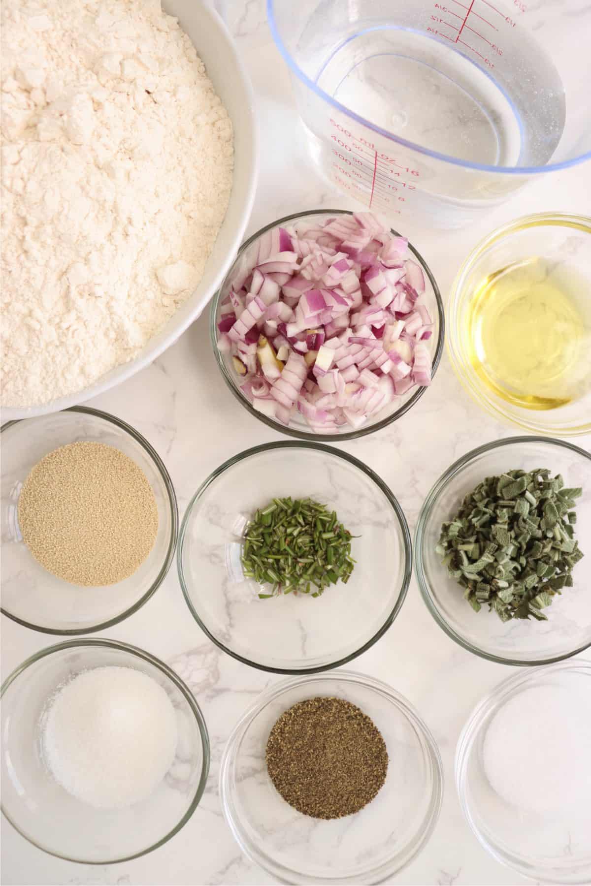 You'll only need a few basic baking ingredients, onions, and some herbs to make this recipe. Chances are you have everything you need in your kitchen right now!
