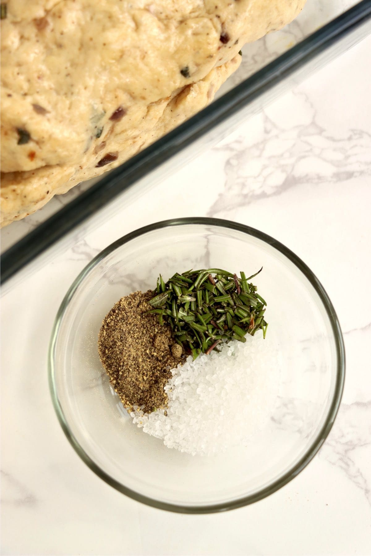 - In a small bowl, combine black pepper, salt, and rosemary.. Stir and sprinkle mixture all over the tops of the loaves. Leave loaves uncovered to rise for another 30 minutes.
