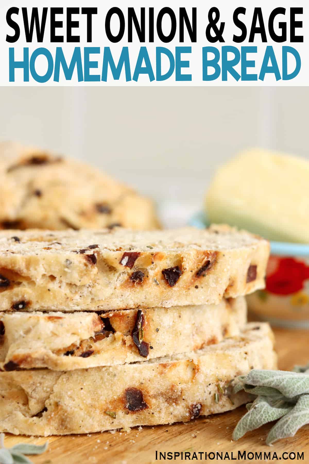 This delicious sage bread with onions tastes like the holidays in every bite. This bread is loaded with sage and onions and a touch of sugar, and it tastes almost like stuffing!