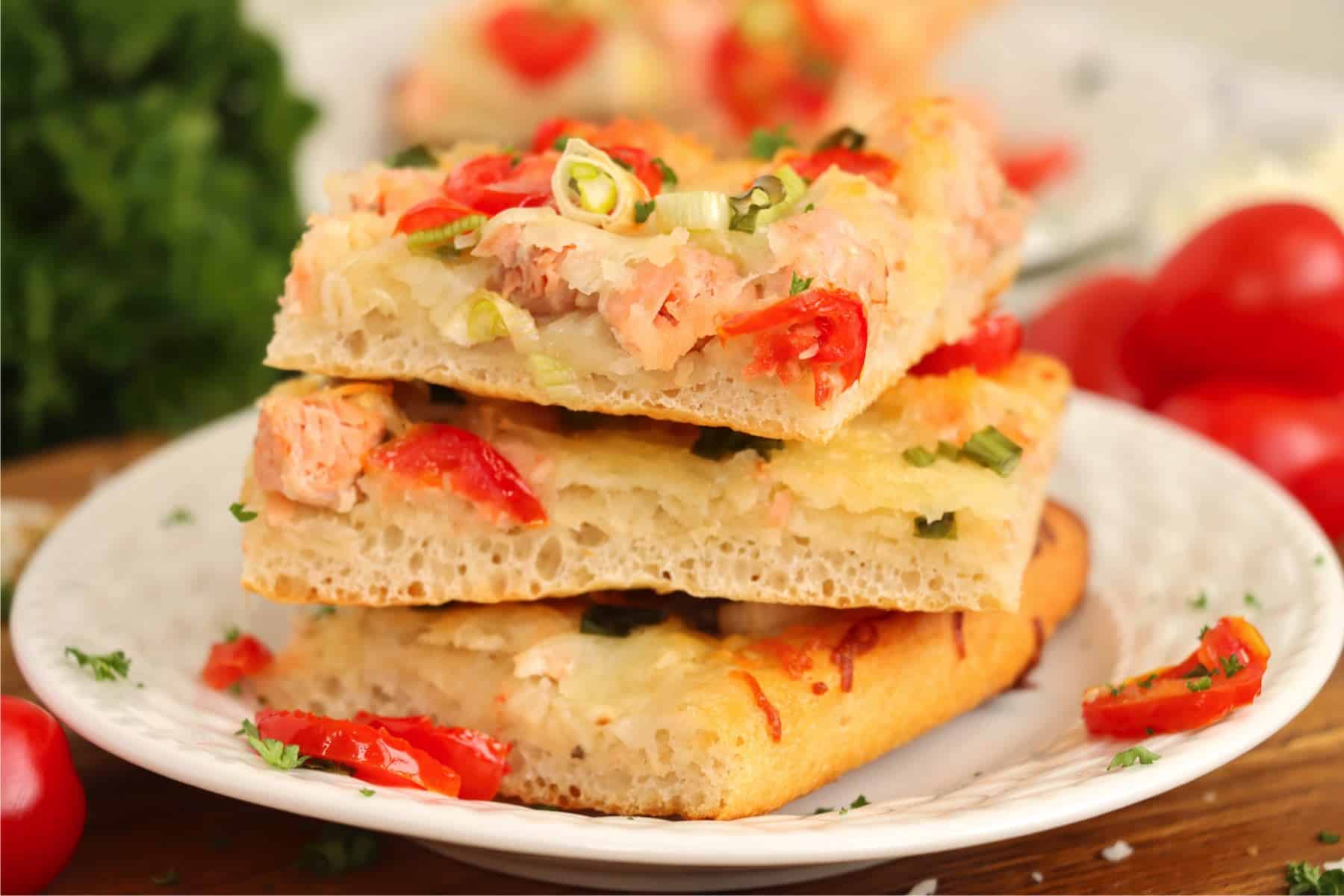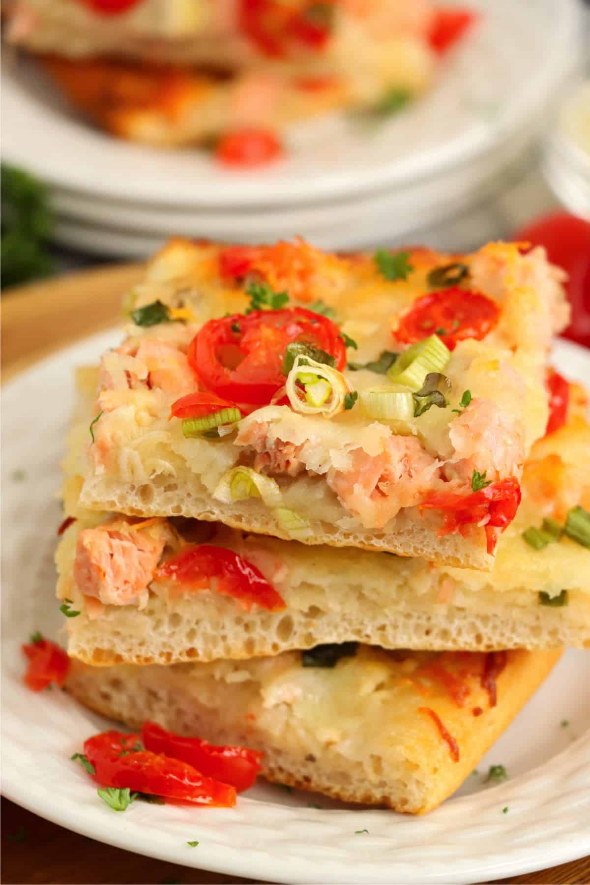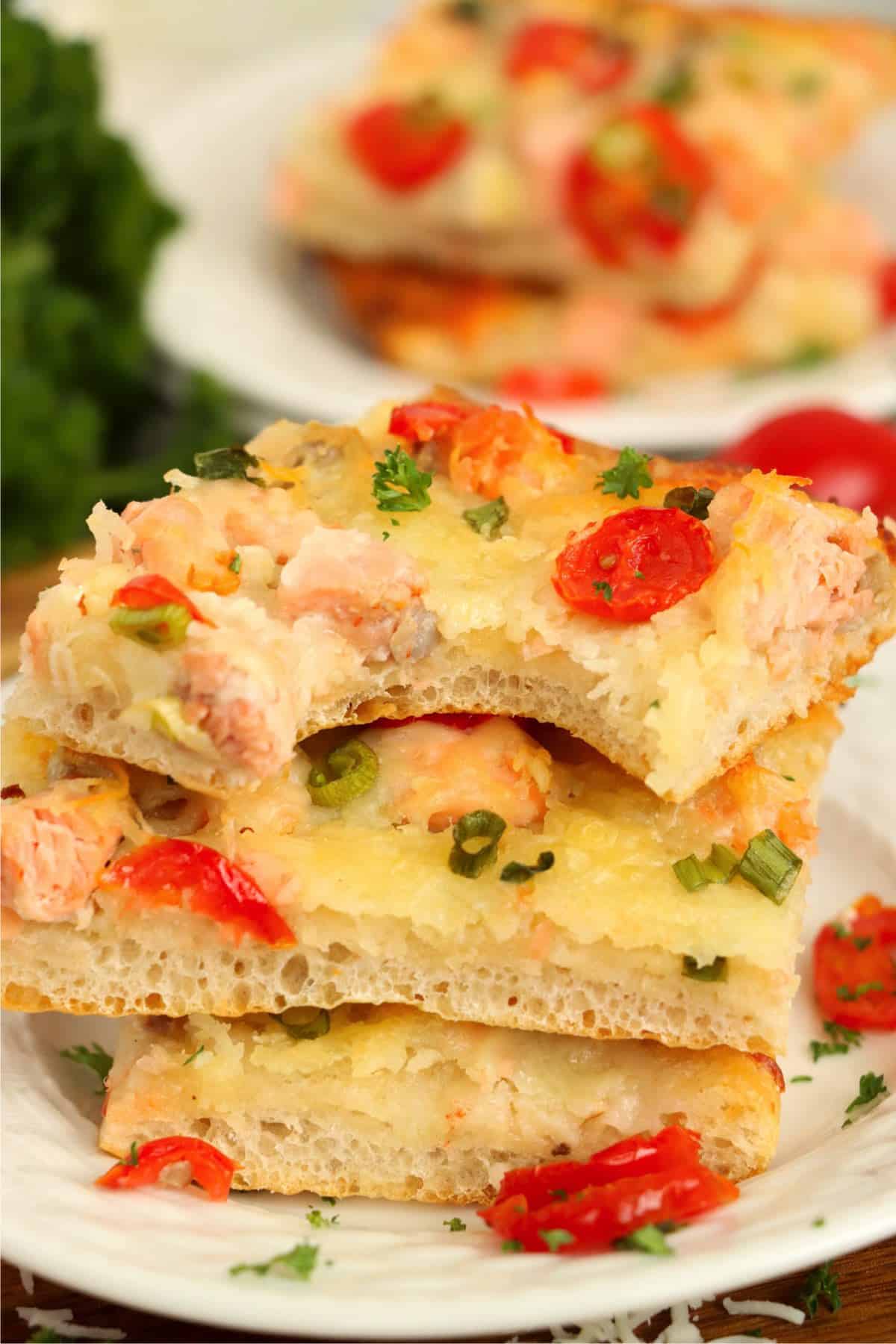 This easy salmon pizza only takes a few minutes and a few simple steps. The entire thing is done in about 30 minutes!