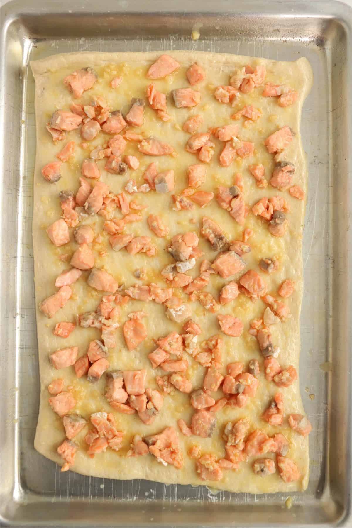 It's important that you stop cooking the salmon as soon as it's cooked through. This keeps it from overcooking when you bake the pizza.