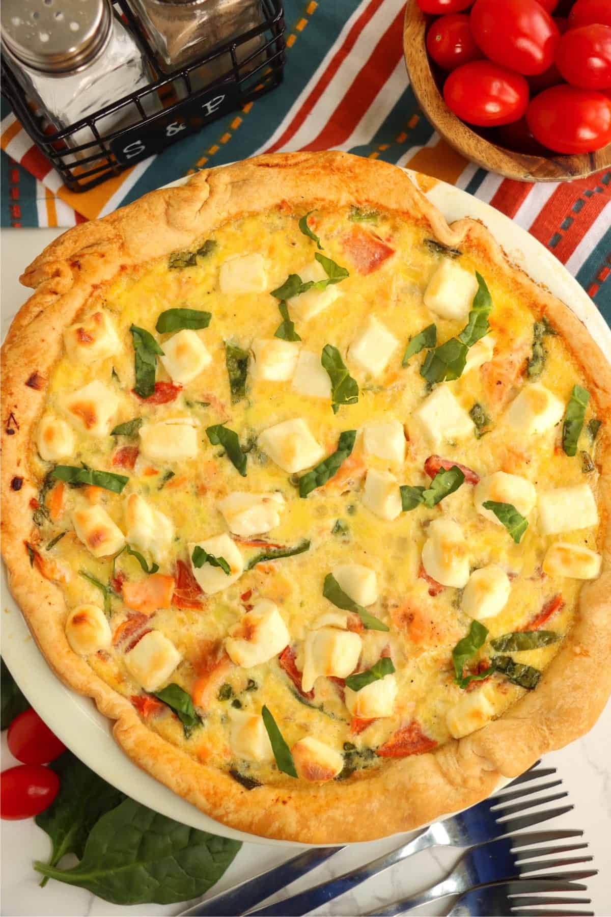 - It has the classic golden pie crust base that makes quiche so delicious.