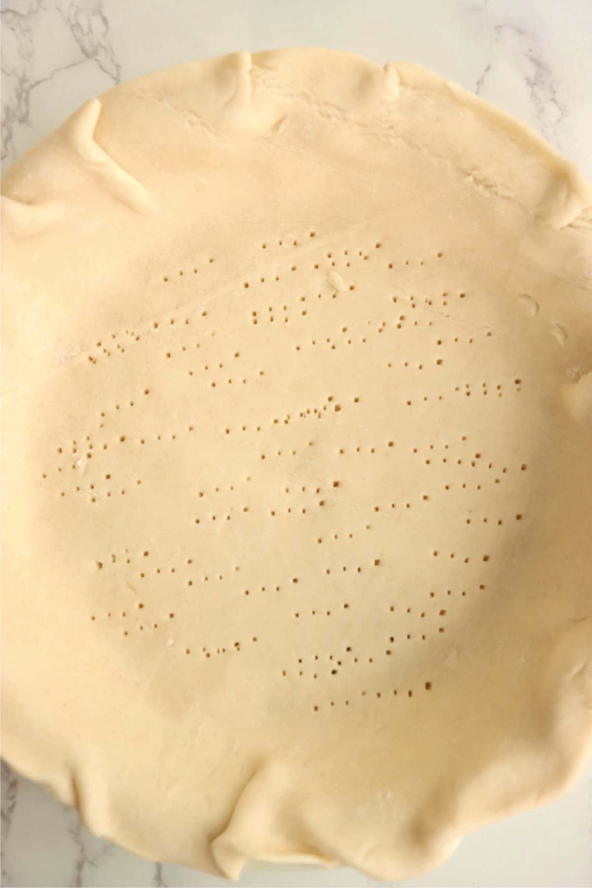 Par bake your crust to ensure it bakes to golden perfection without getting soggy after the quiche filling is added.