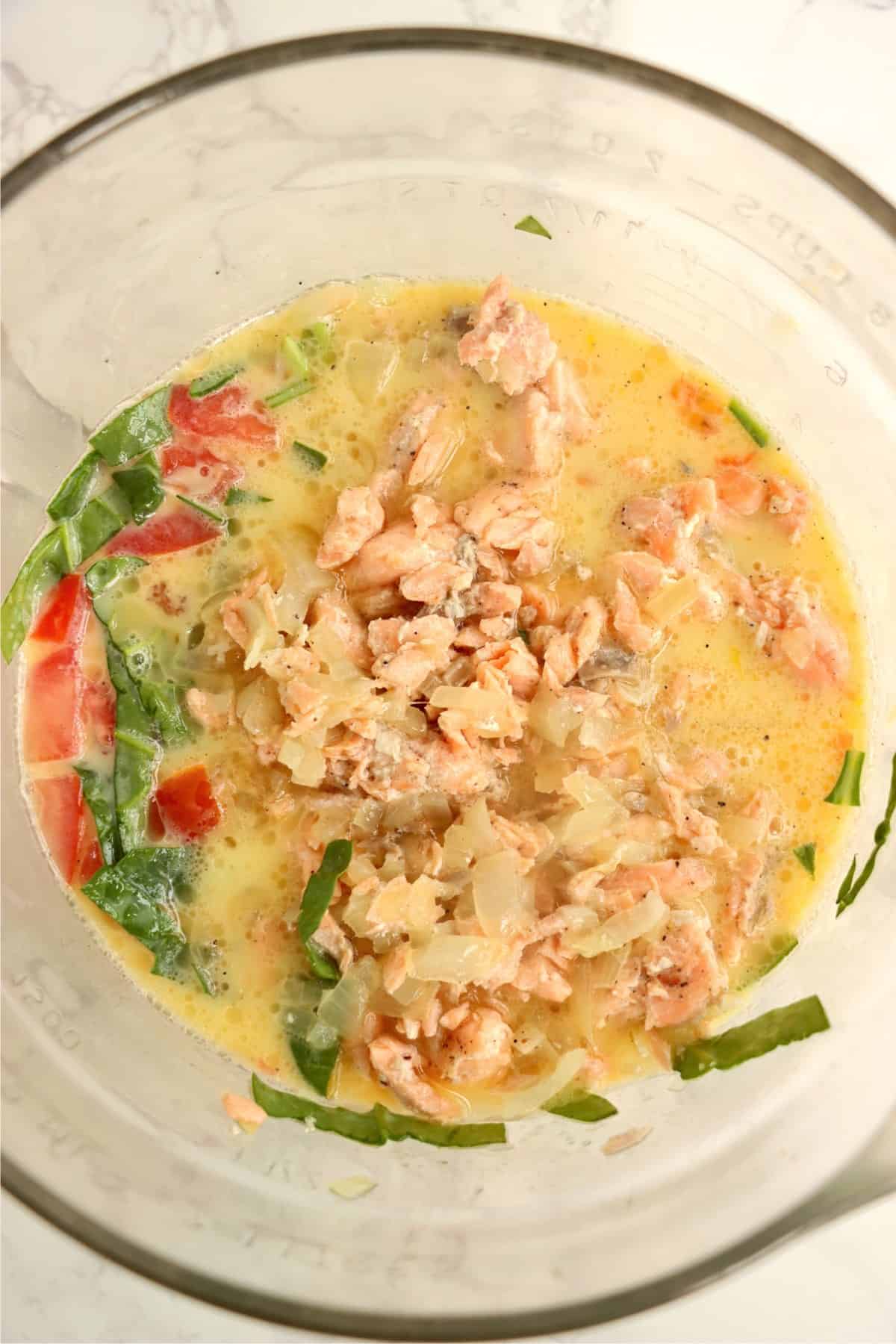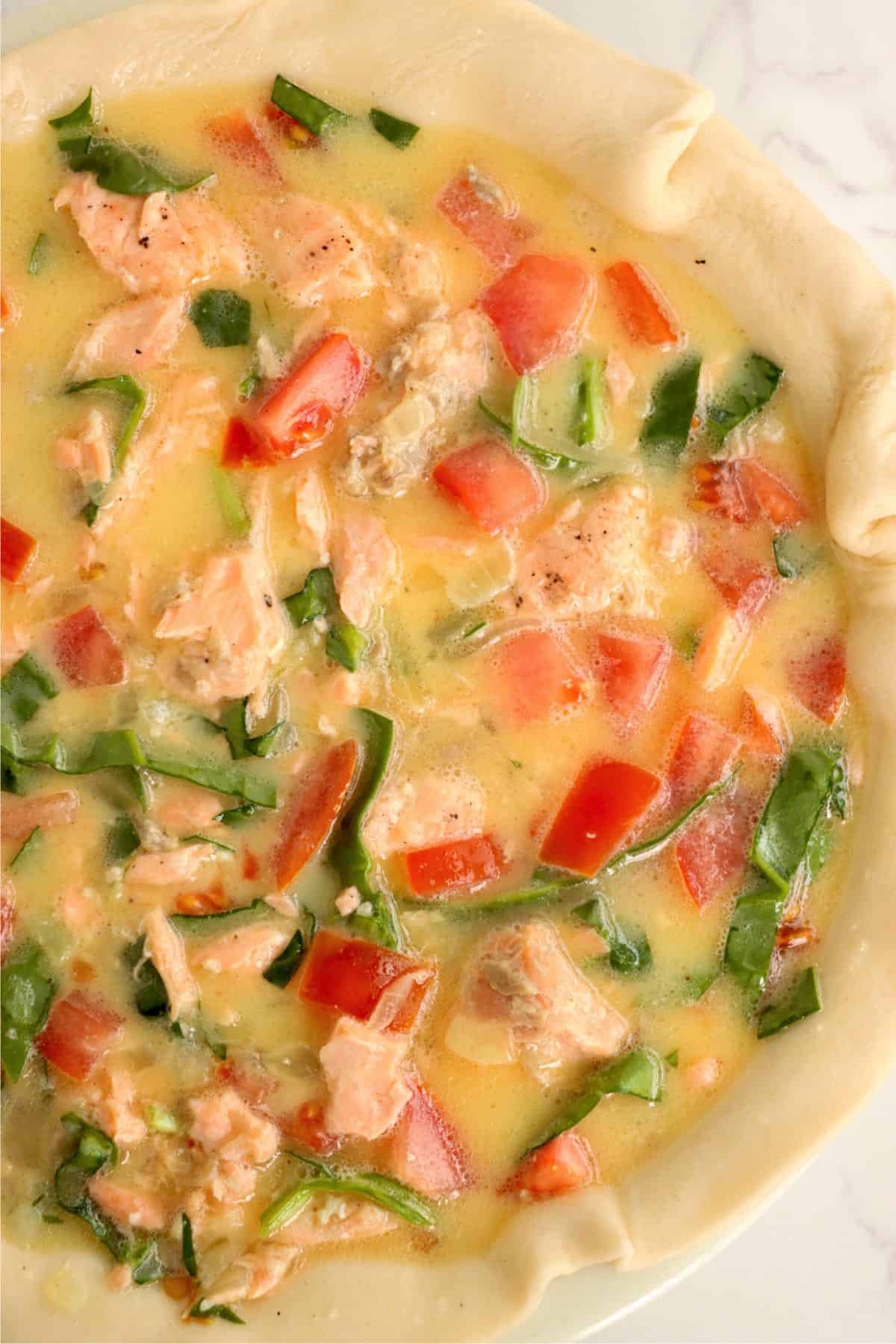This spinach salmon quiche is loaded with protein, healthy fat, and spinach. It's a flavorful, hearty, and a healthy start to the day.