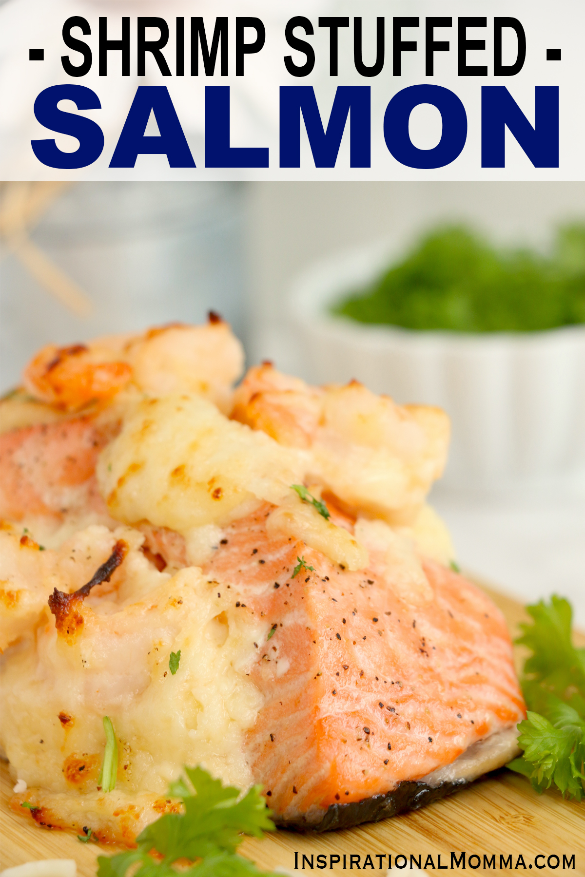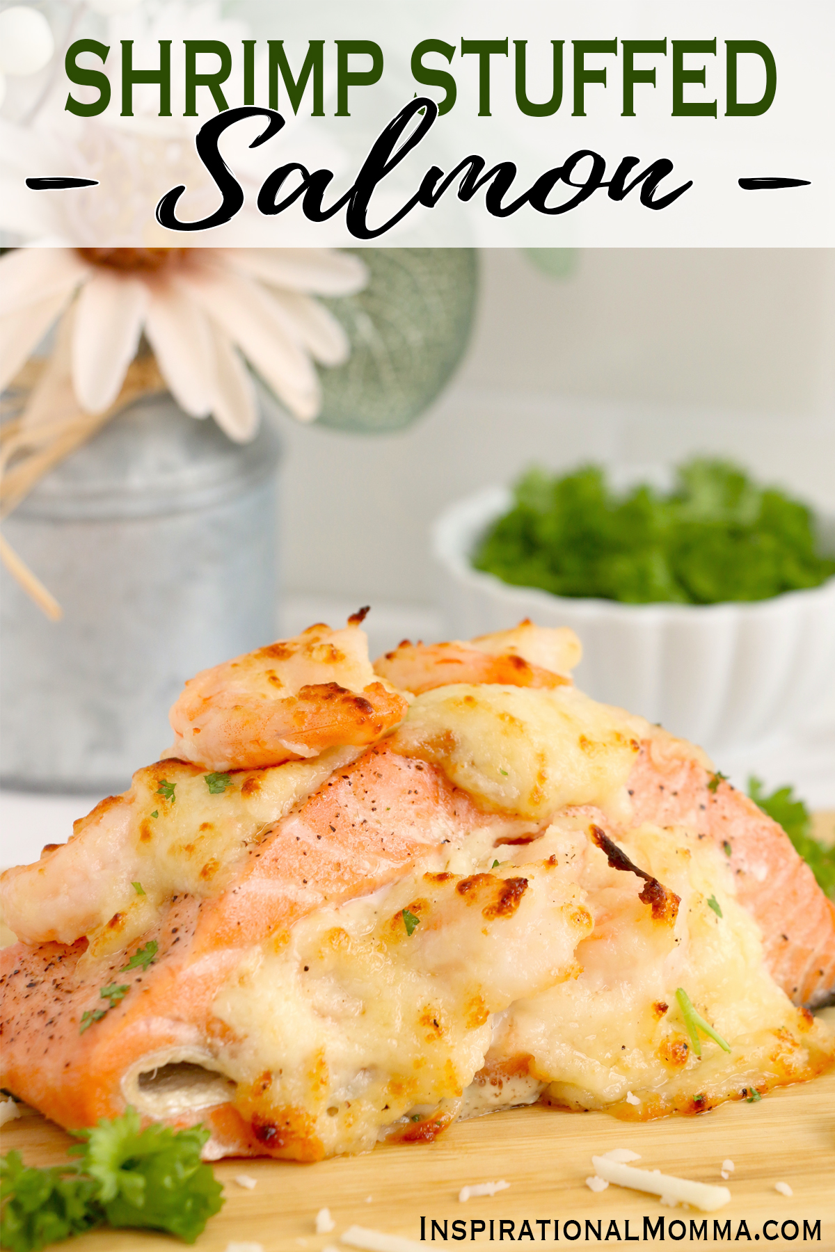 Shrimp stuffed salmon is a delicious, easy dinner. Perfectly cooked salmon is stuffed with a creamy shrimp and cheese mixture.