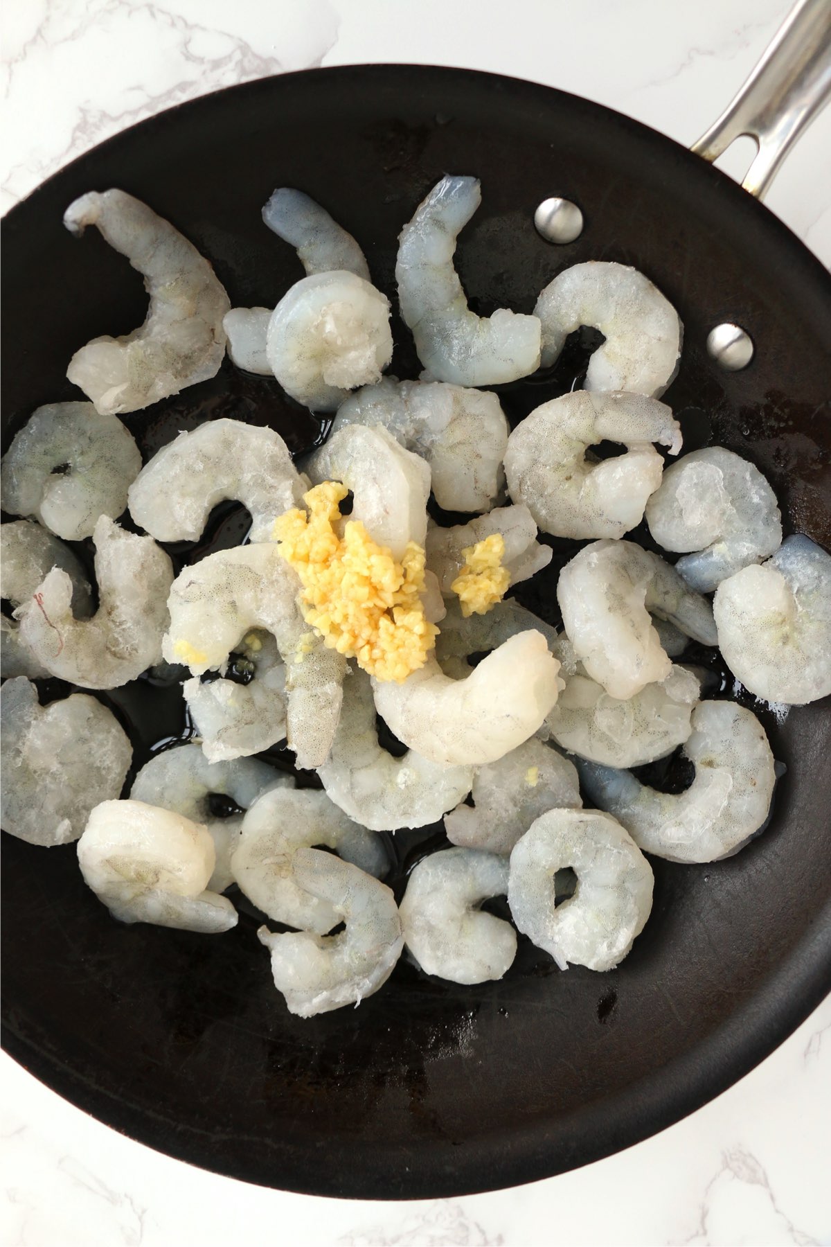 Step 3: When oil is heated, add shrimp and garlic. Stir often, being sure not to burn the garlic.