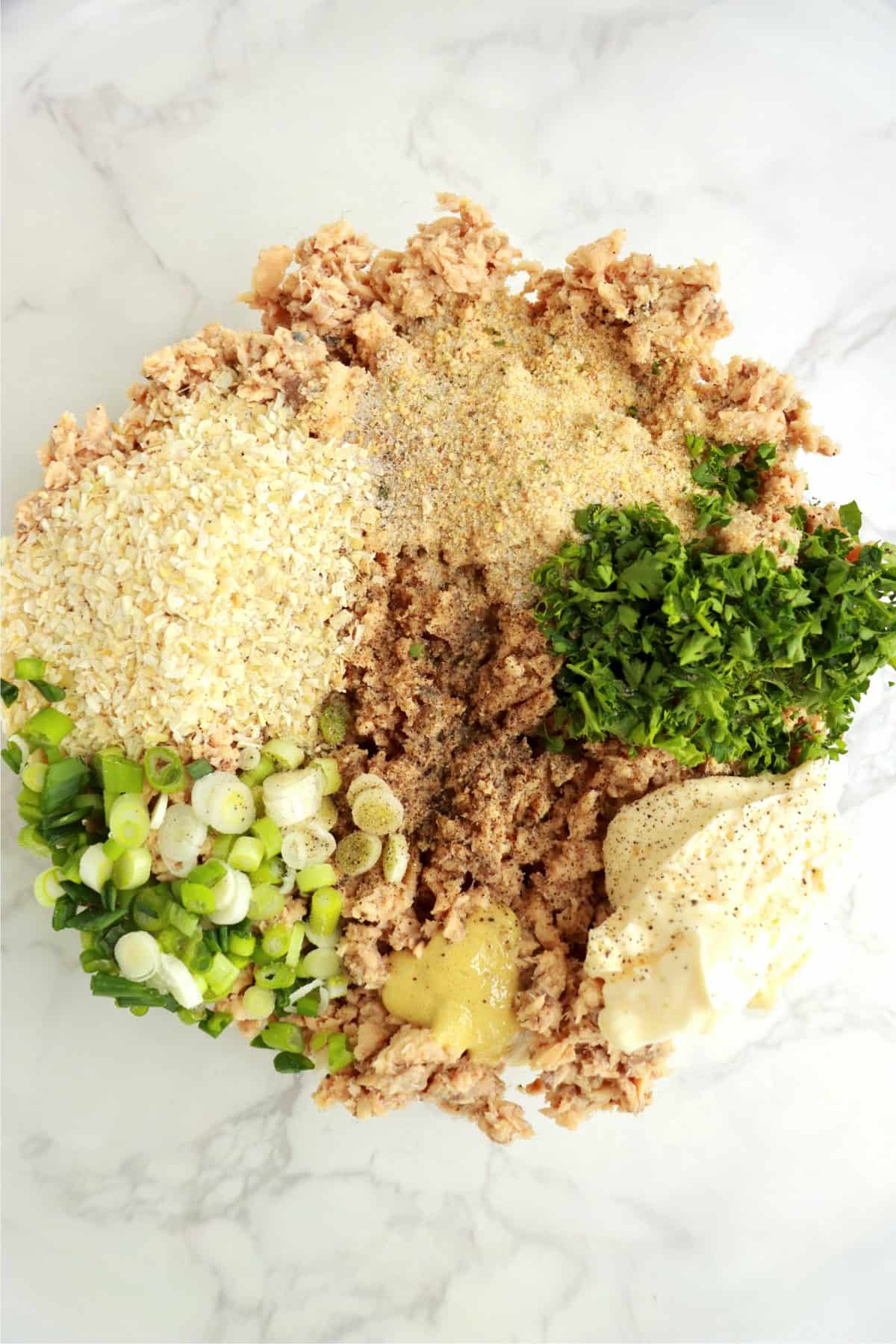 - Add salmon and mix until combined. Set aside.