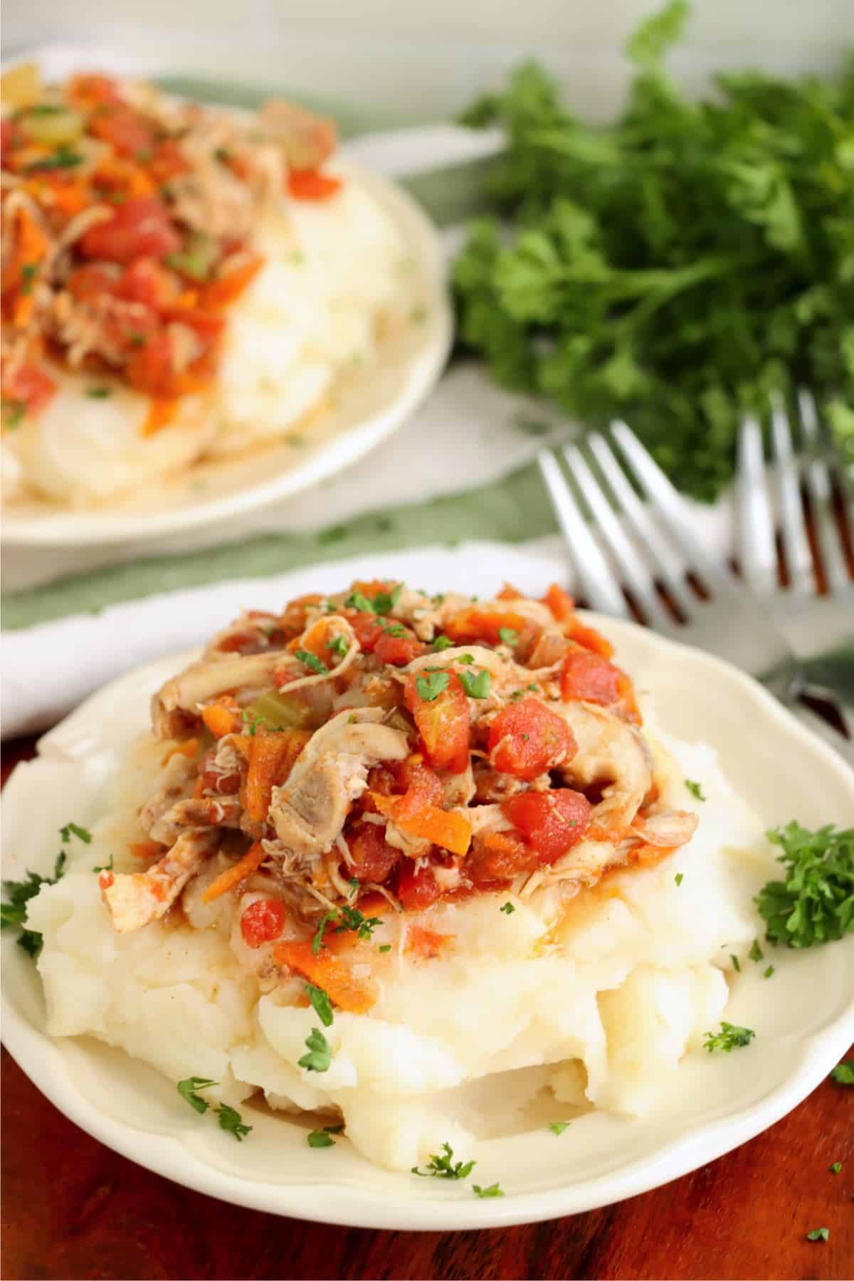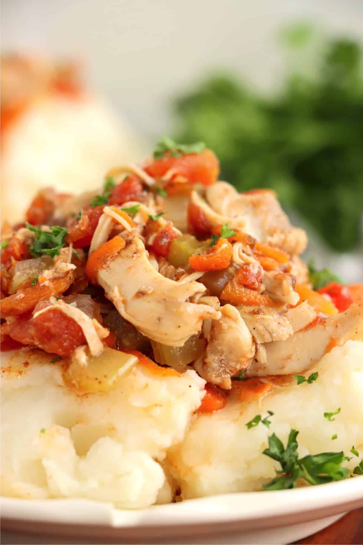 - Return the chicken to your slow cooker and stir until combined. Serve chicken and vegetable mixture over rice, pasta, or mashed potatoes.