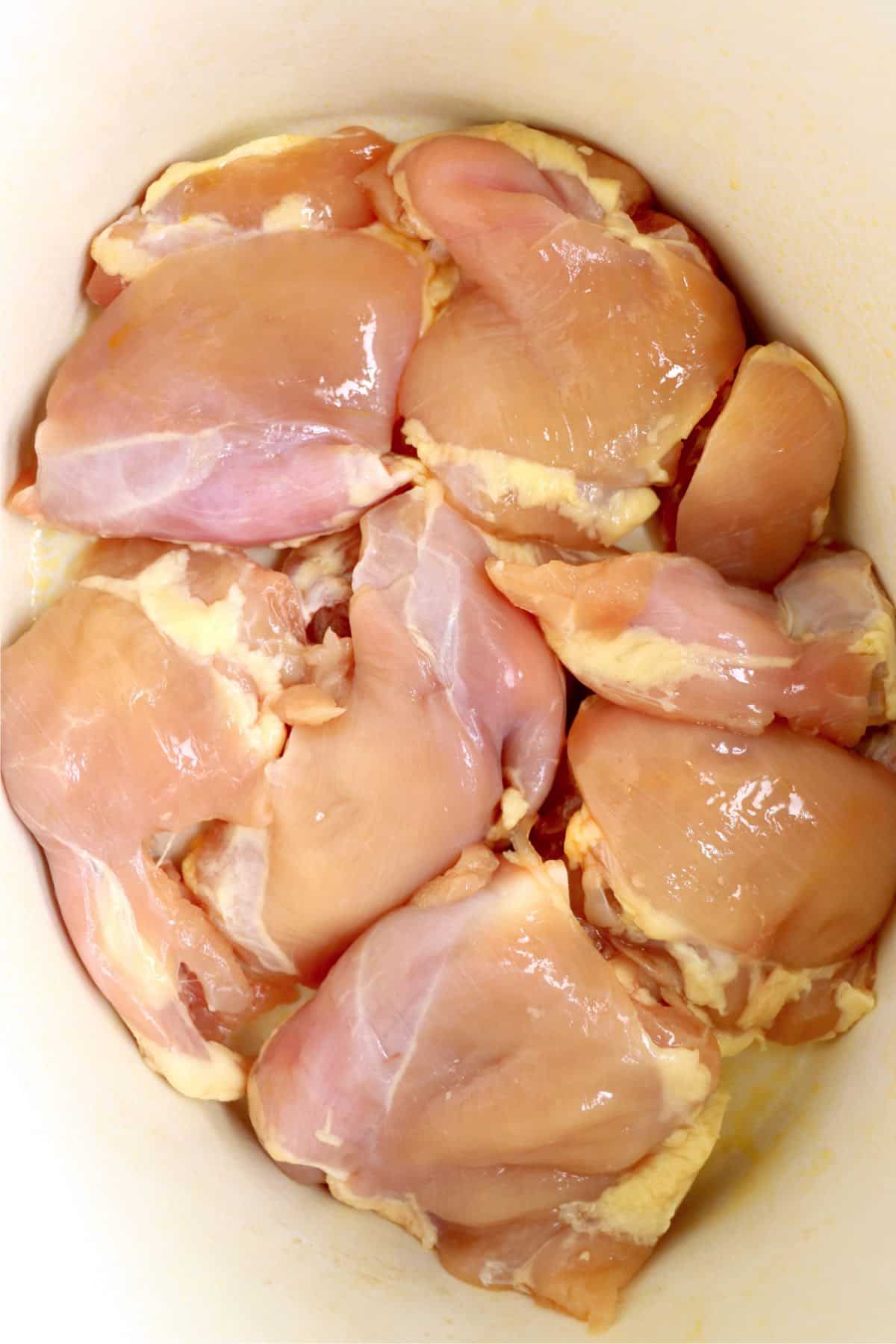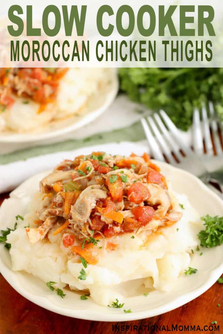 These slow cooker Moroccan chicken thighs are tender, juicy, and loaded with zesty flavor. They're also super easy to make!