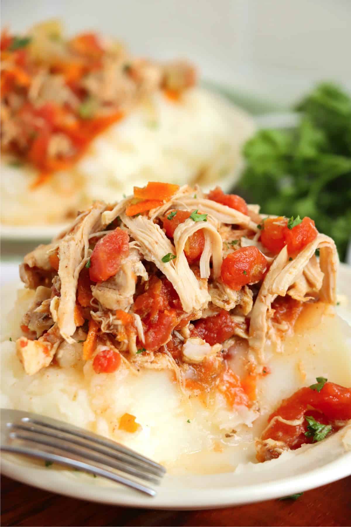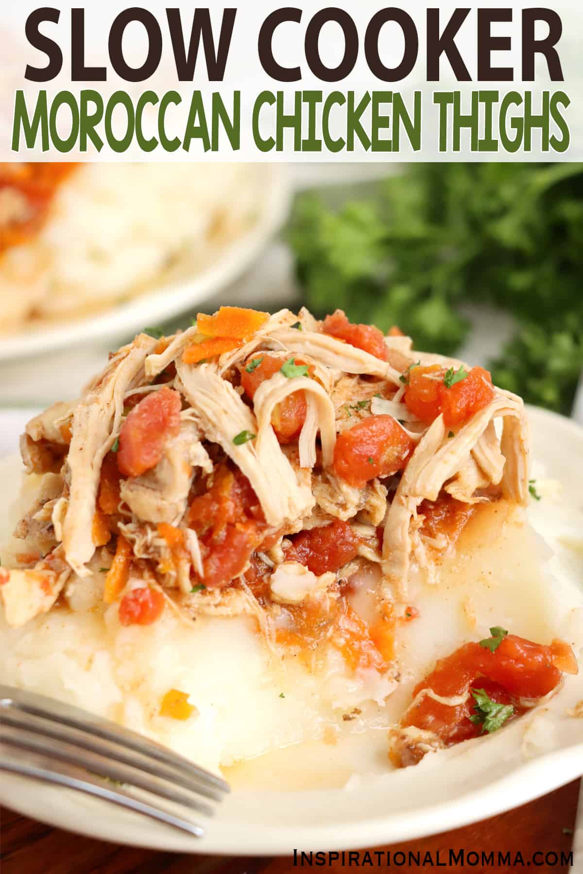 Serve this shredded Moroccan chicken thighs dish over mashed potatoes, rice, or egg noodles.