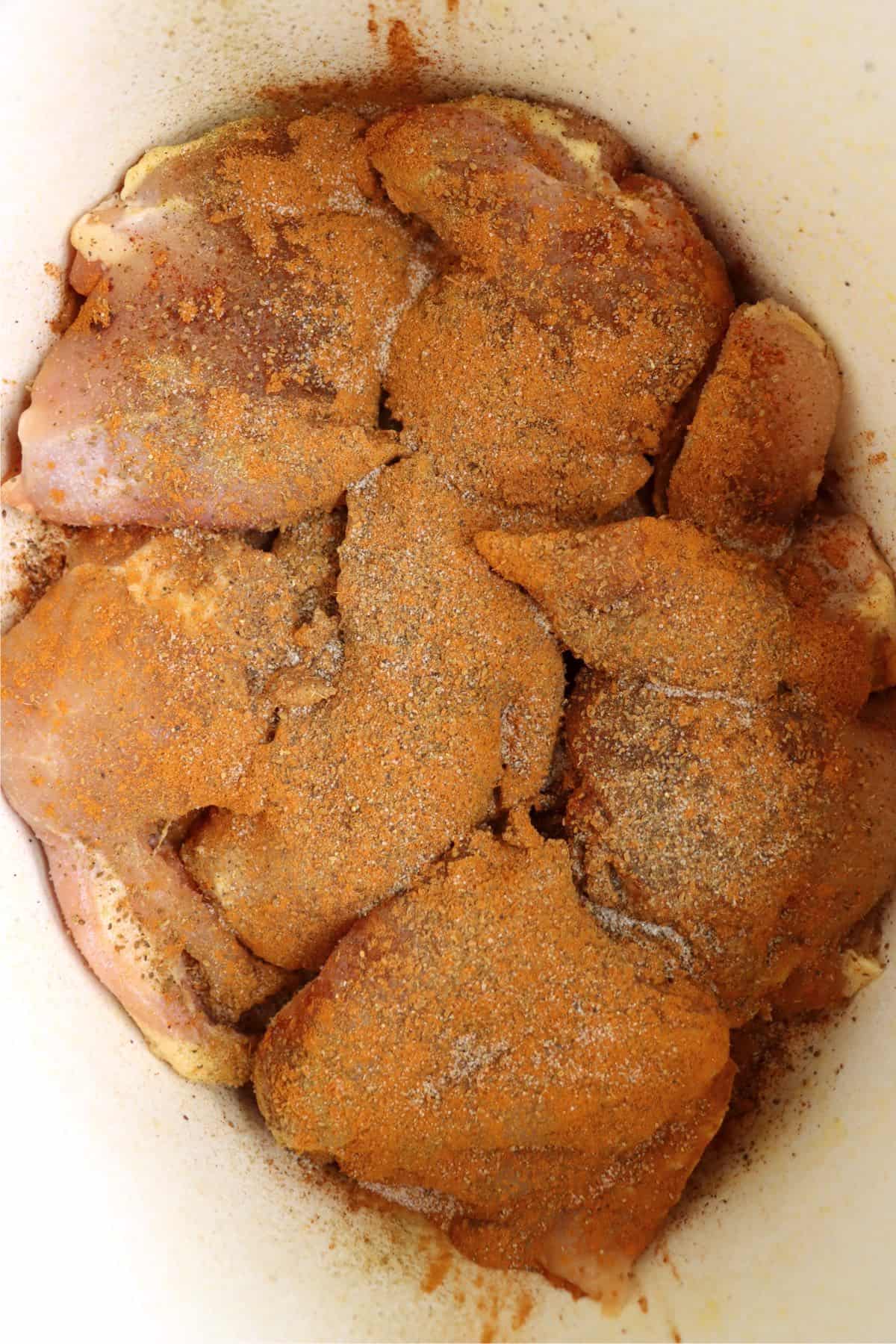 - Sprinkle the seasonings directly onto the chicken thighs before adding the other ingredients to ensure the chicken is thoroughly seasoned while still seasoning the vegetable mixture.