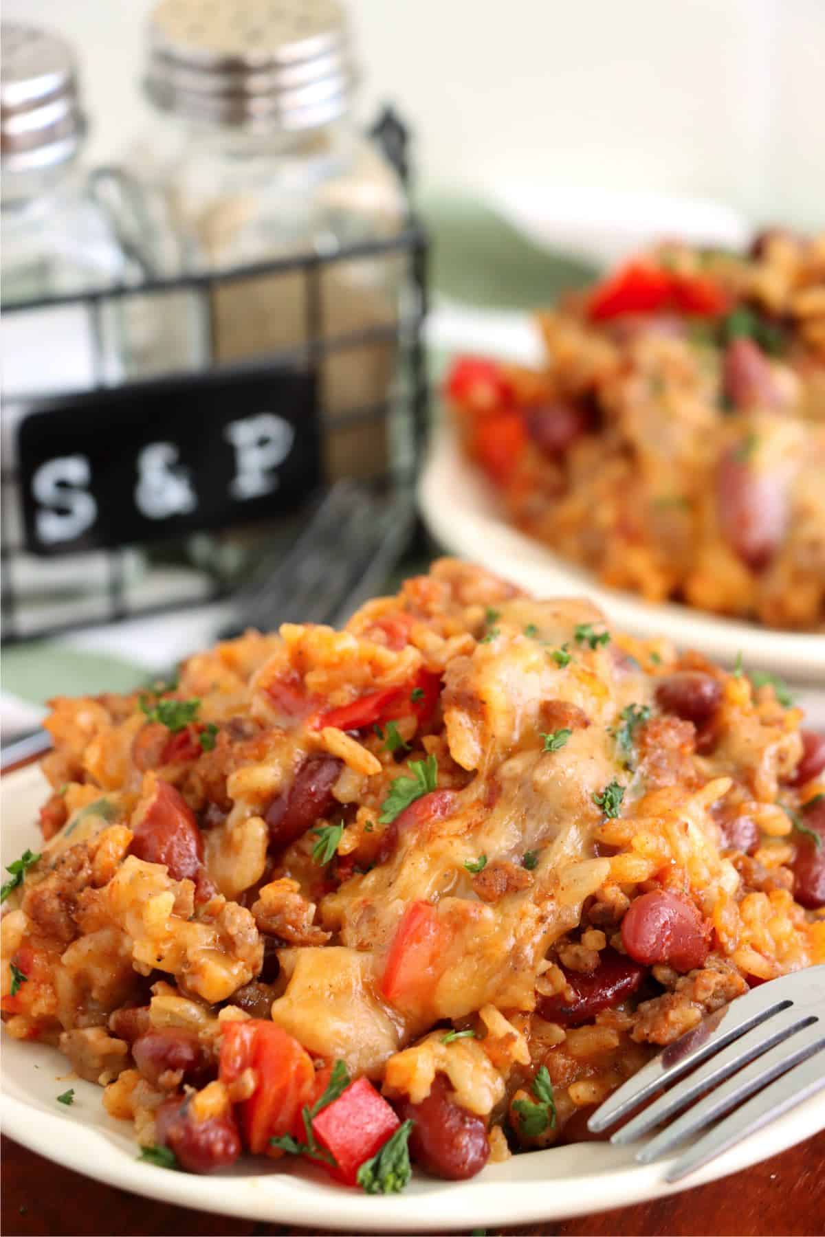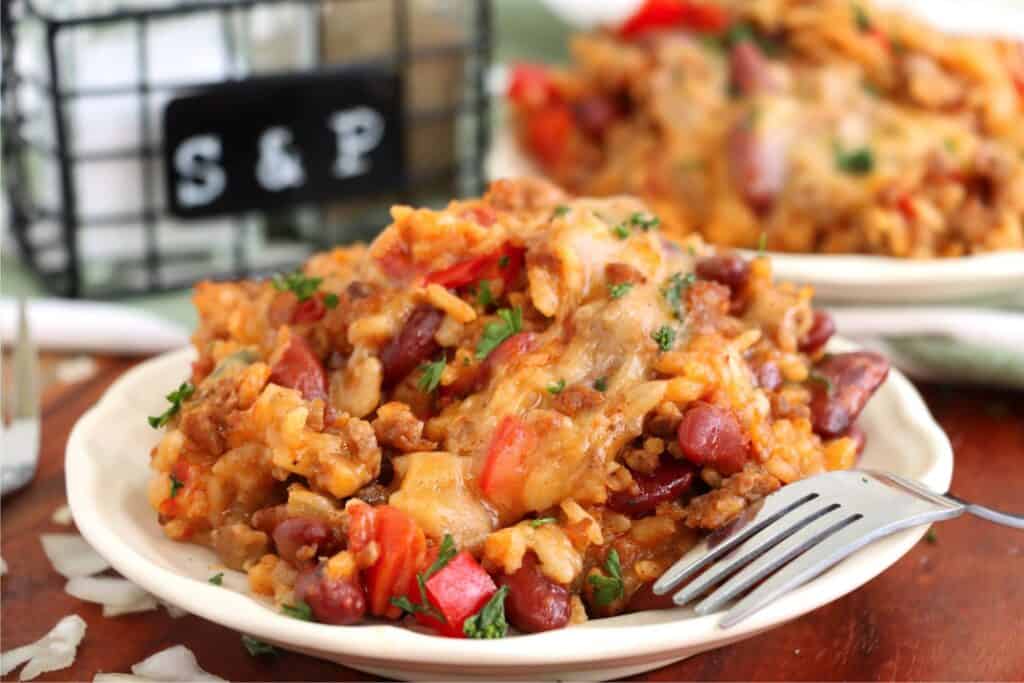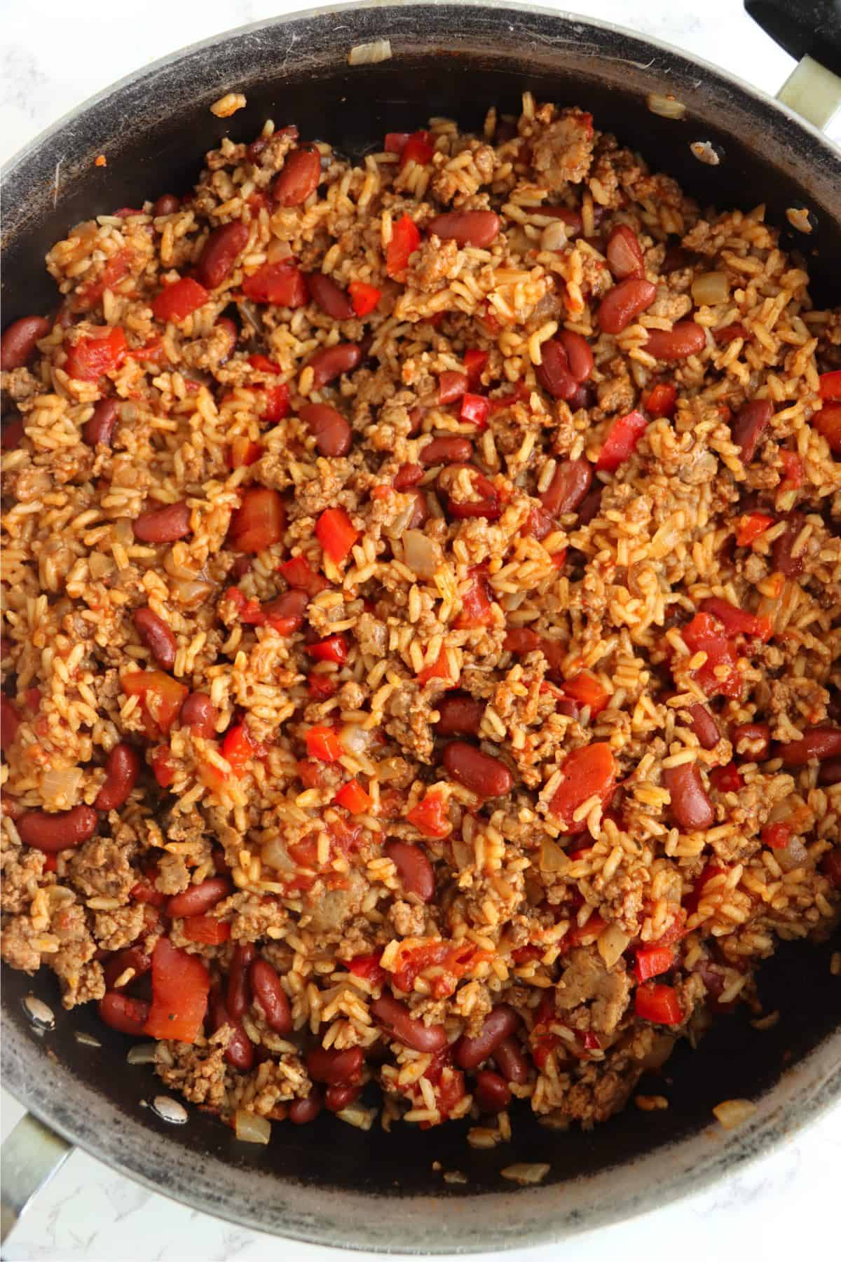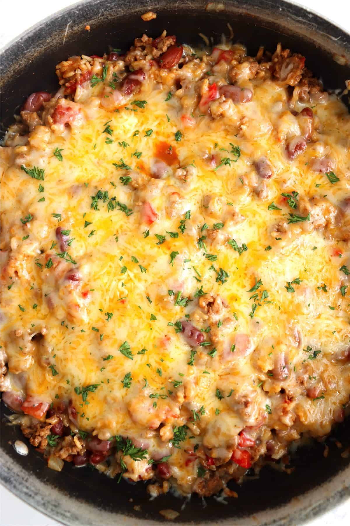 This southwestern beef and rice skillet is the perfect dish for any busy family. It's loaded with beef, rice, beans, cheese, and zesty southwestern spices. It's a satisfying dish that only takes one-skillet to make!
