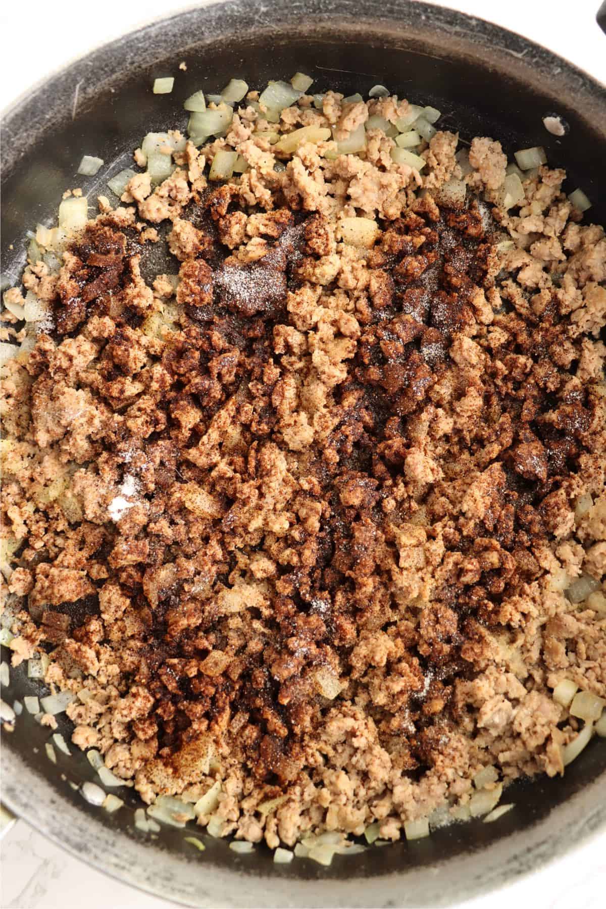Cook your ground beef until cooked through and no further. Overcooked ground beef is tough, rubbery, and flavorless.