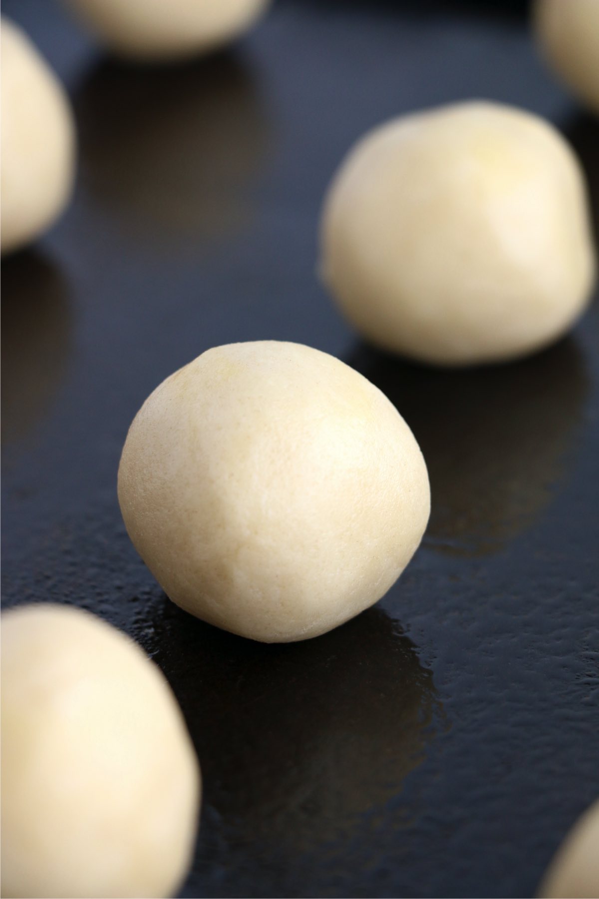 - Form dough into 1-inch balls and place them on a greased baking sheet.