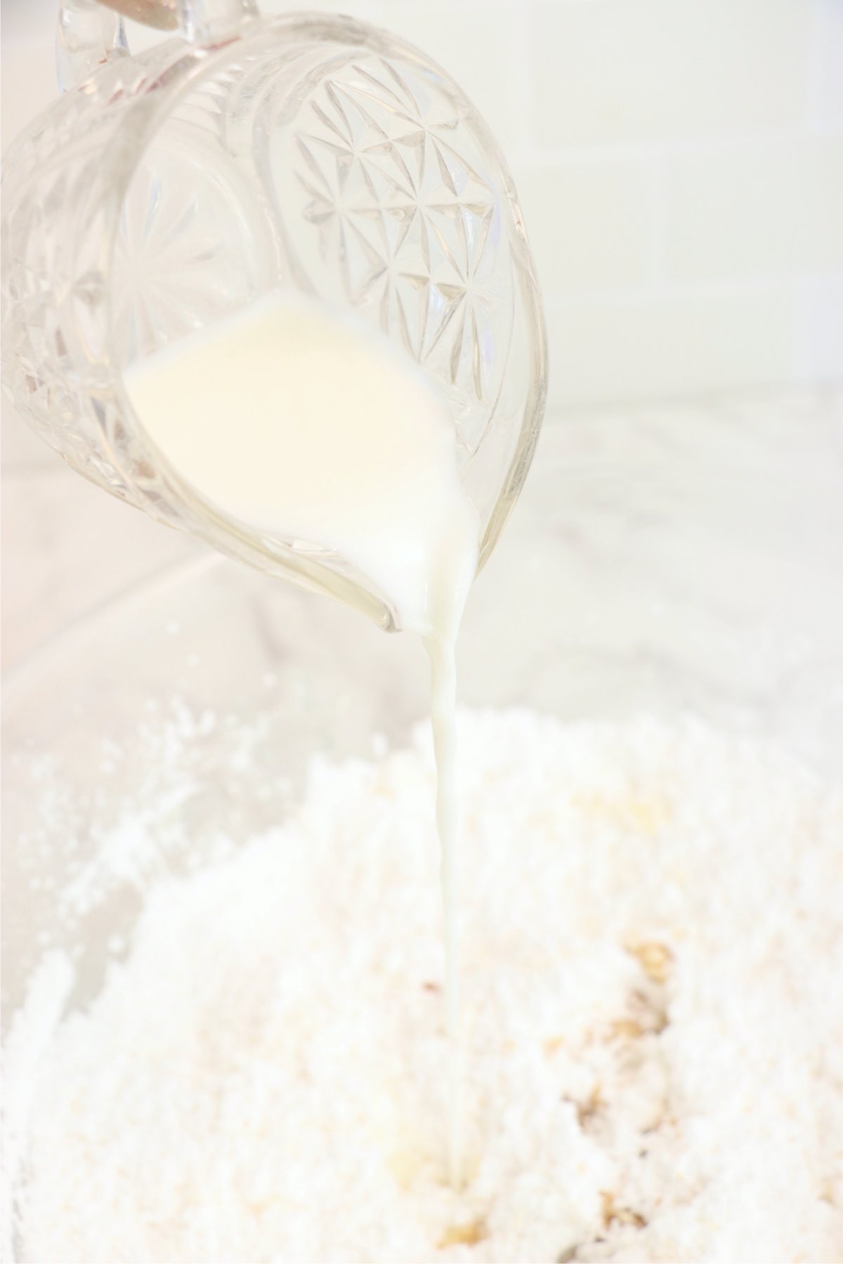 - Add 2 tablespoons of milk and vanilla. Beat well.