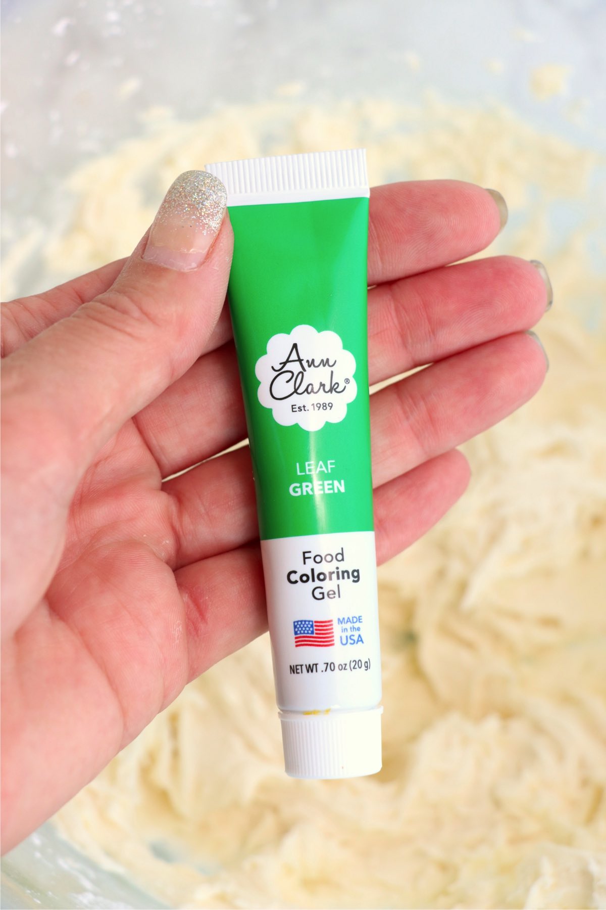 2: Add green food coloring gel to the frosting until the desired color is reached.
