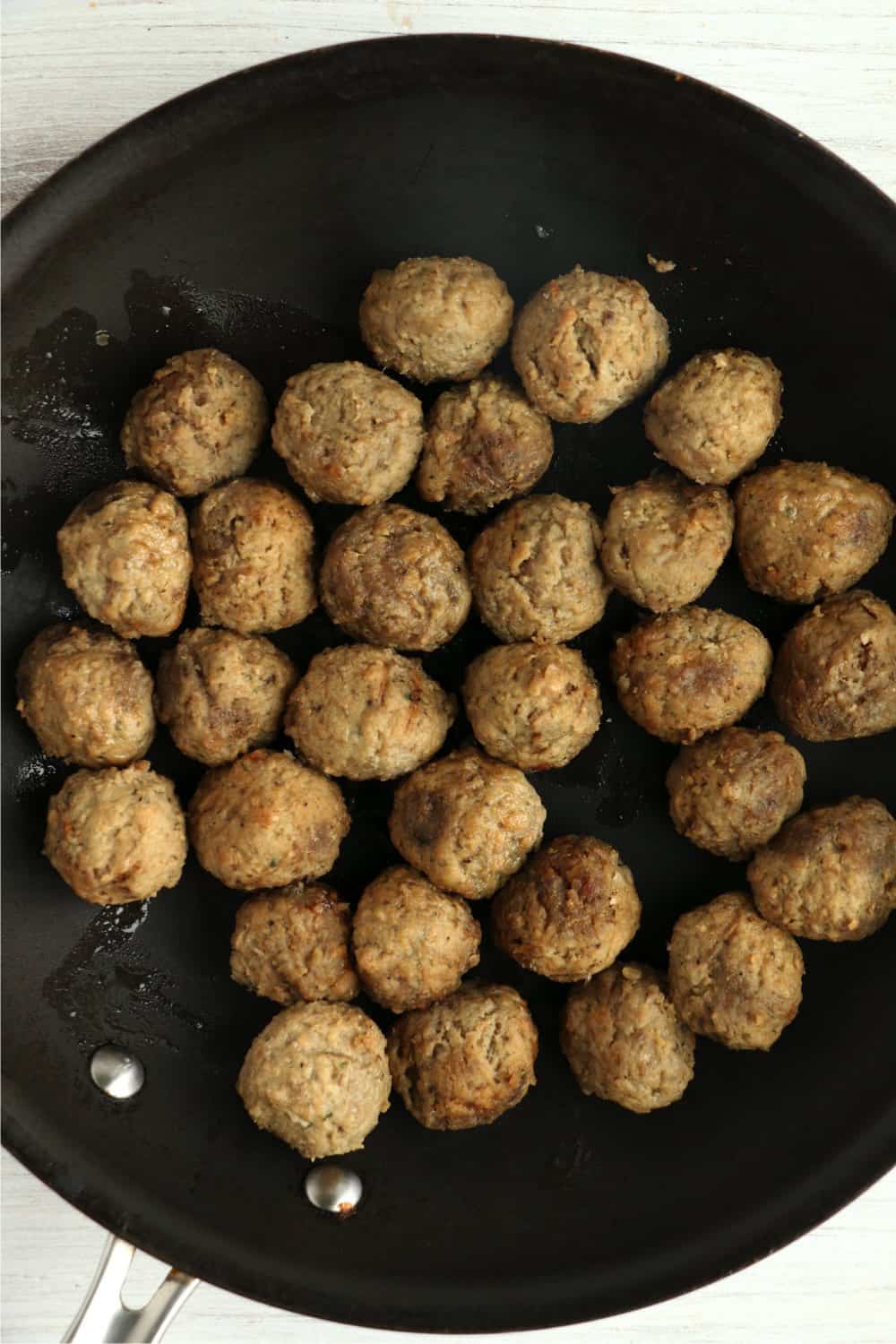 - Add meatballs to a medium sauce pan over low to medium heat.