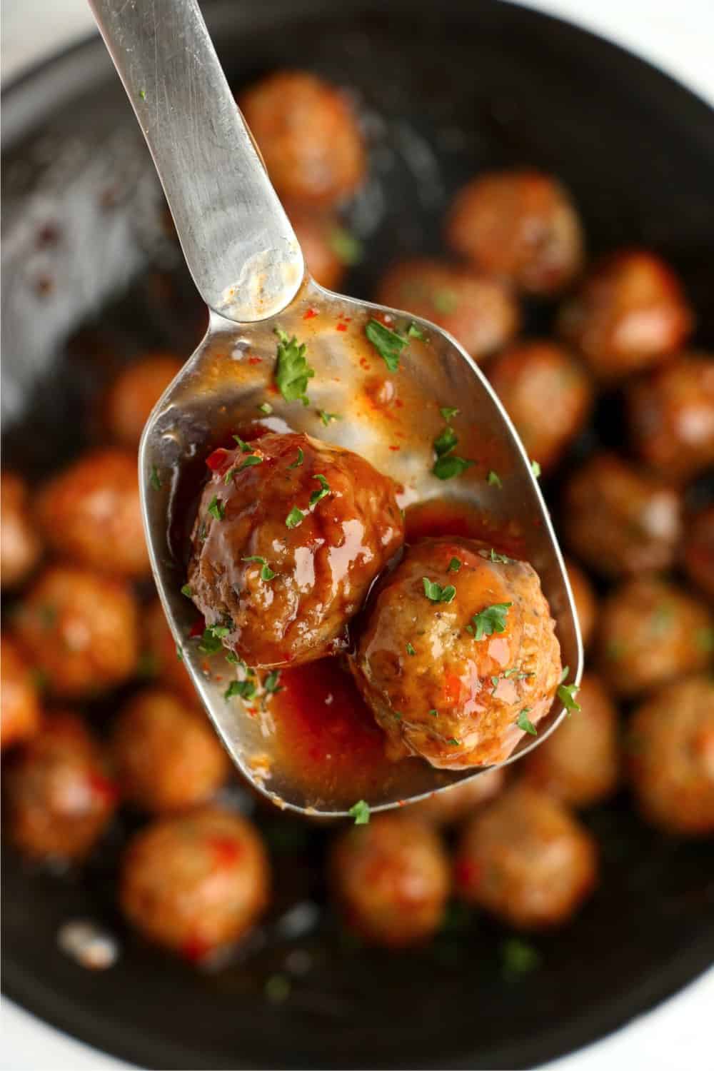 So many of my favorite dishes, including these Sweet Chili Meatballs, have found their way into my kitchen in this exact way. And there is just something about meatballs! The possibilities are endless! Sweet, spicy, or salty, they are all sensational. You can make so many different variations with common items that you already have in your kitchen. My Honey Garlic Meatballs are a great example of that! Another perfectly created flavor that will please everyone at your party, made with ingredients that you already have at your fingertips.