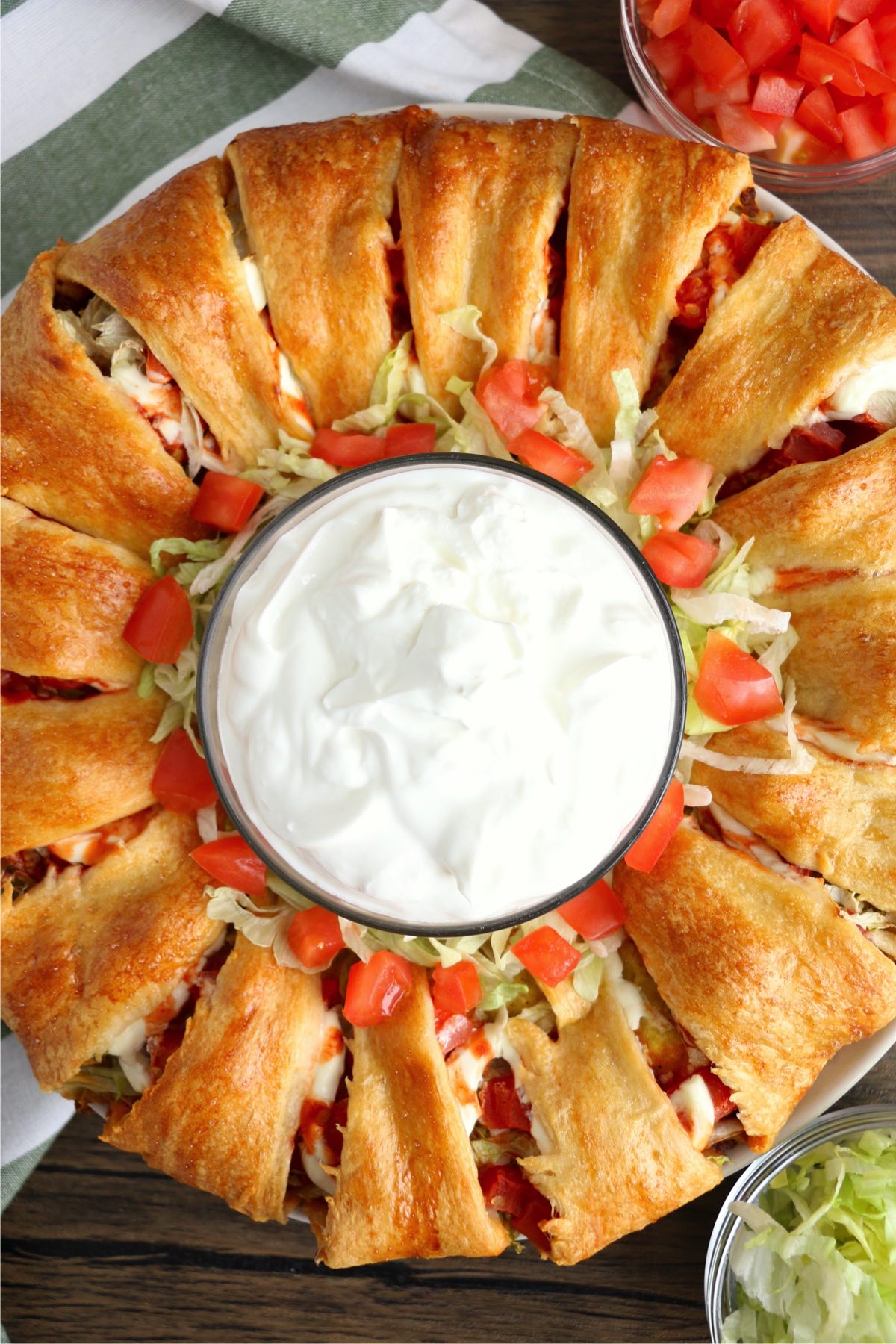 This Taco Bell Crunchwrap Supreme ring is filled with everything we love about the Crunchwrap supreme, all served up in a delicious appetizer.