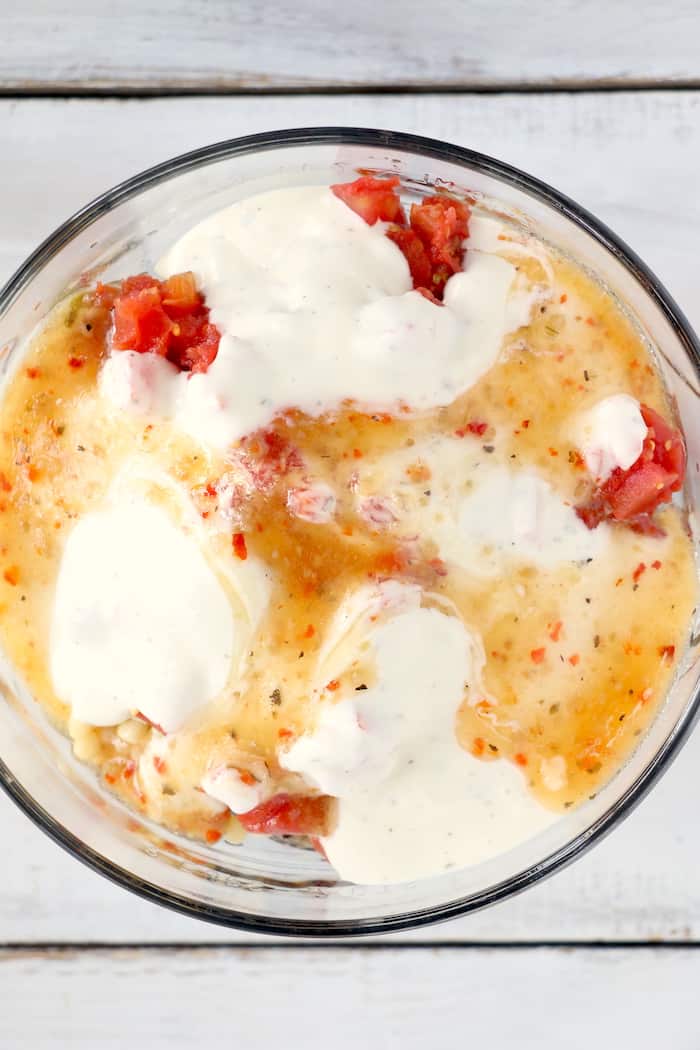 - Open Rotel, do not drain. Add to bowl.
