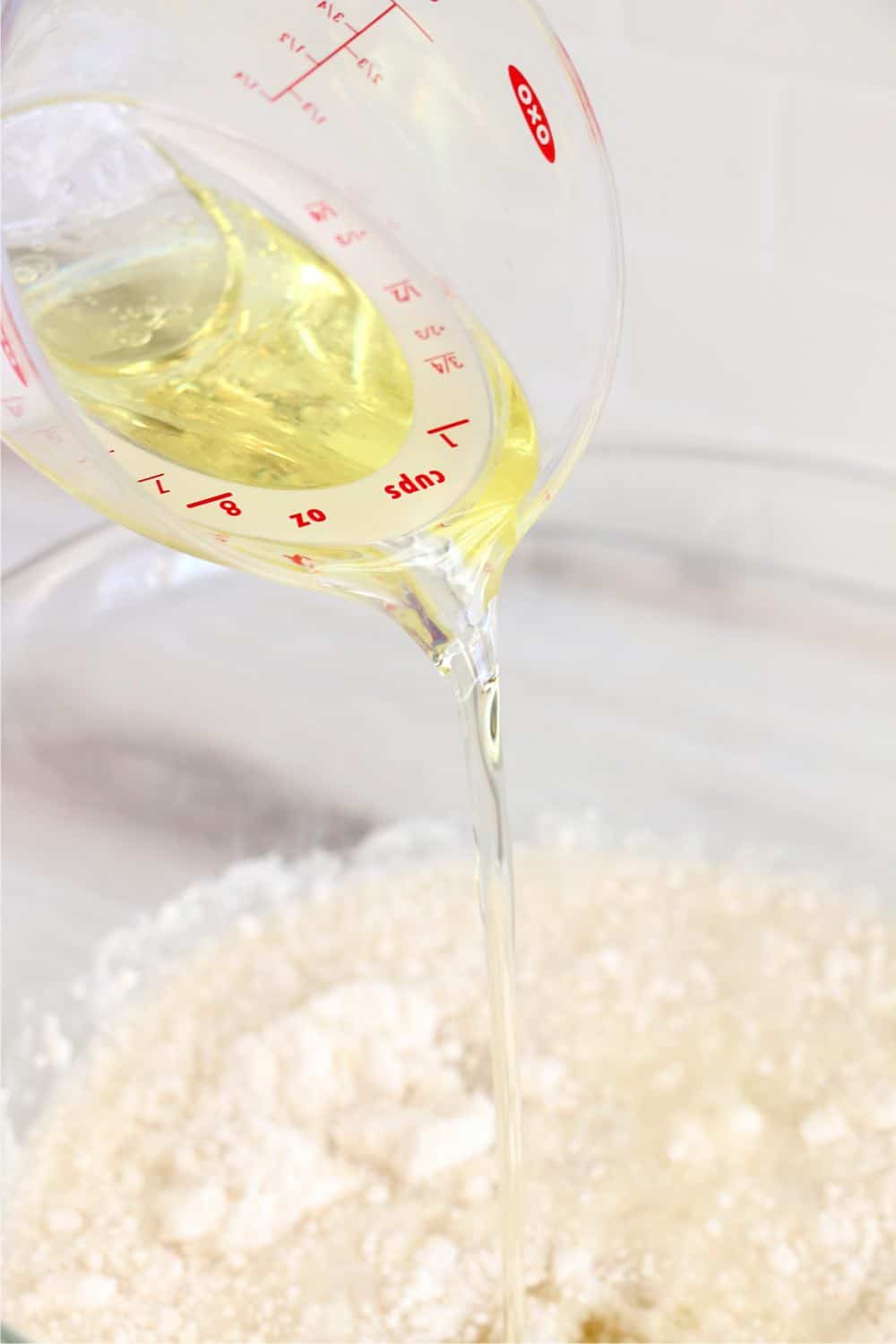 Our next step is to prepare the cake batter according to the package directions. This recipe will work with any boxed cake mix, but each one calls for slightly different ingredients. Be sure to add what your particular cake mix calls for.