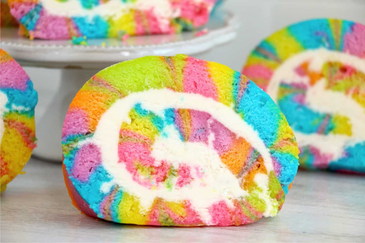 That is exactly how I felt the first time I made this Tie Dye Vanilla Cake Roll. WOW! Just look at it! It is almost too beautiful to eat. But let's be honest, I couldn't resist digging in. Moist, colorful white cake filled with homemade creamy buttercream frosting is a sensational combination that everyone will love!