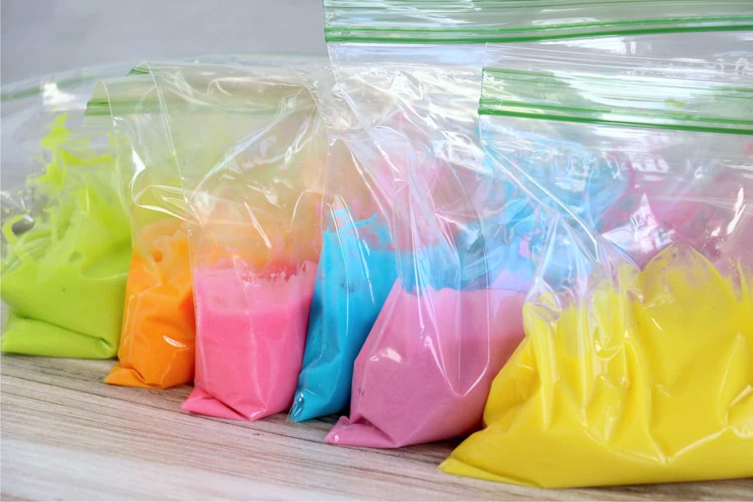 - Add a color of food dye to each bowl and mix until the colors are uniform throughout.