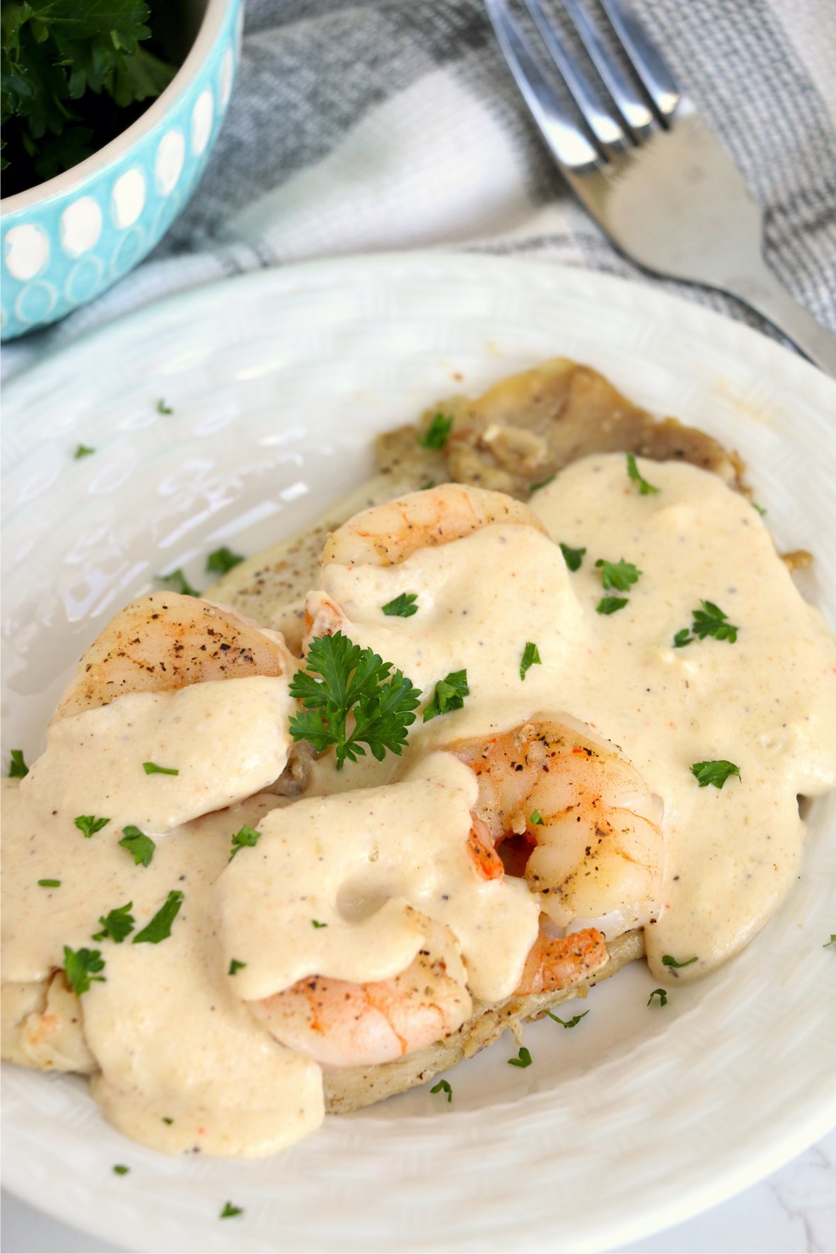 This tilapia and shrimp recipe is full of the delicious flavors of perfectly cooked tilapia and shrimp along with a rich, creamy sauce.