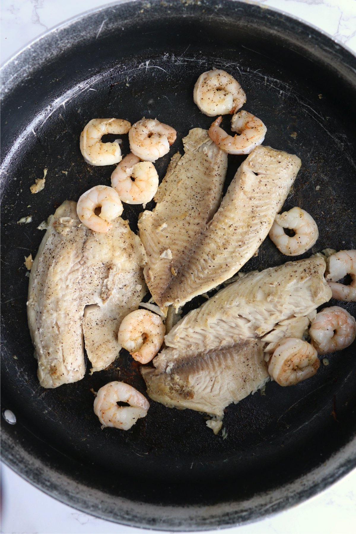 This tilapia and shrimp recipe is a seafood lover's dream. Perfectly cooked shrimp and tilapia with a creamy sauce makes a great meal.