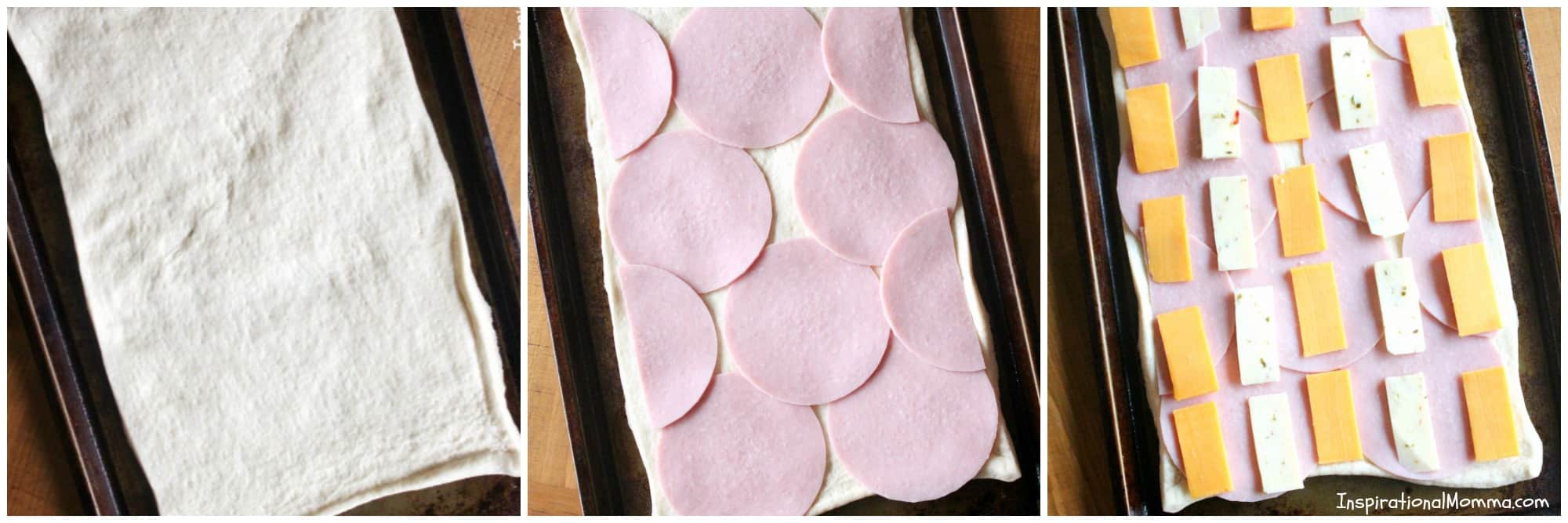 Step 4: Roll dough, cheese, and turkey up, starting with the short side.