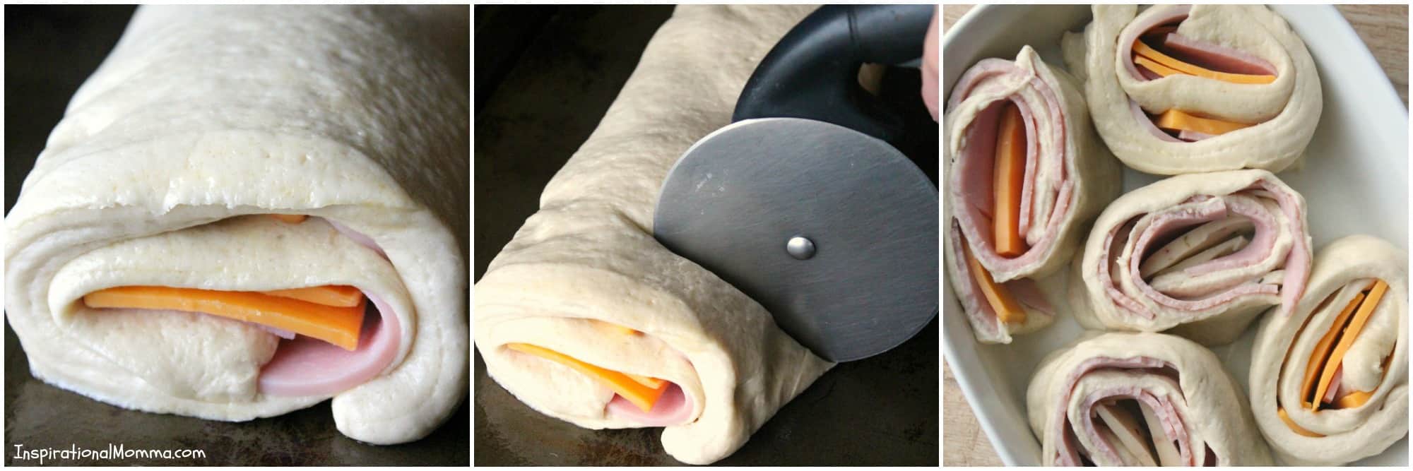 - Roll dough, cheese, and turkey up, starting with the short side.