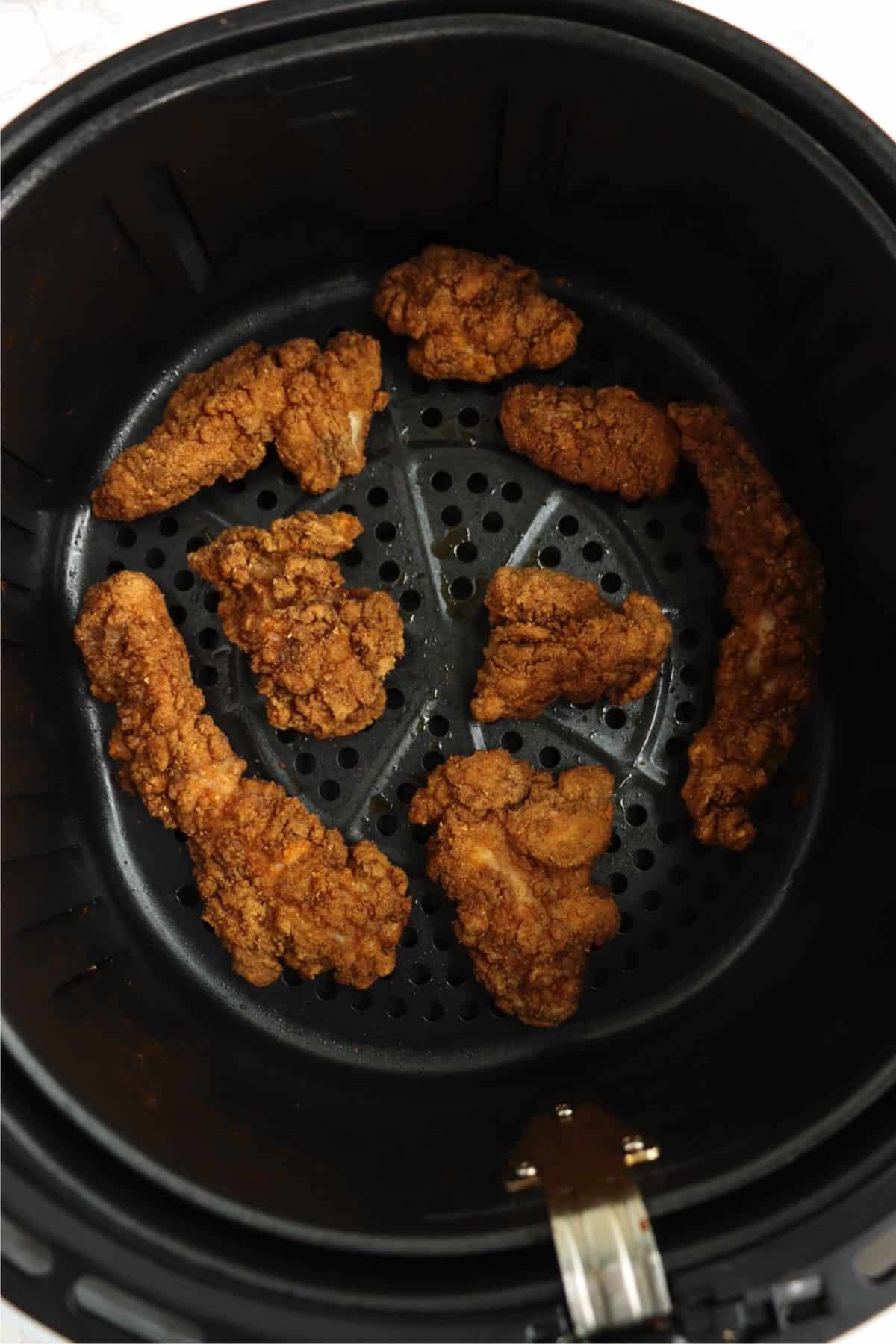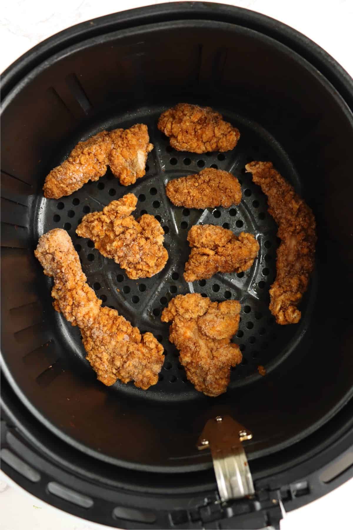 It doesn't get much easier than this recipe. You just air fry the chicken strips, and you're all done! The highlights are here, but you'll find the exact instructions in the recipe card at the end of the post.
