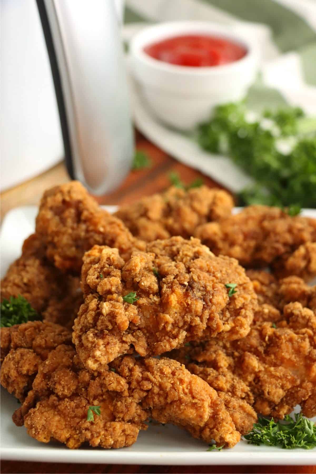 These Tyson air fryer chicken strips are tender and juicy on the inside and crispy on the outside. They're an easy, delicious dinner!
