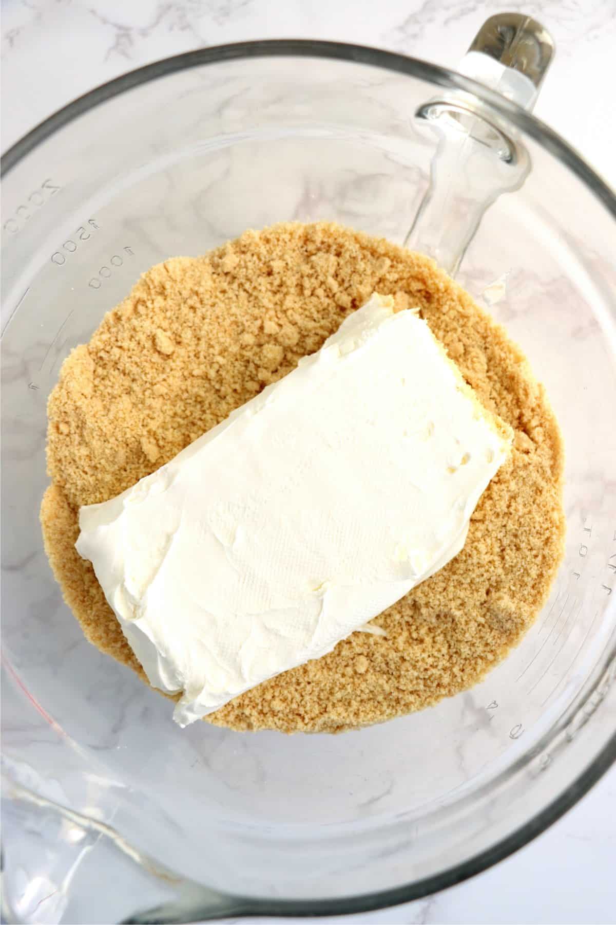 - In a medium mixing bowl, beat Oreo crumbs and cream cheese together.